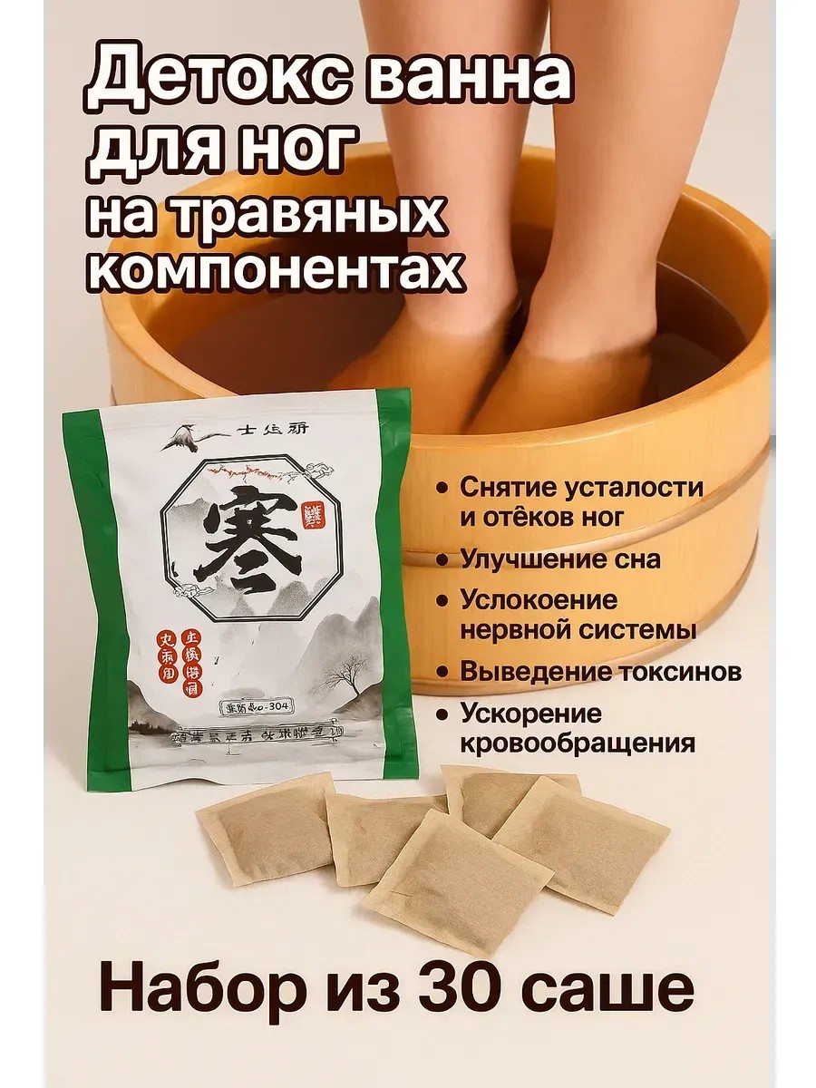 Hurry to buy Body Detox – herbal foot baths in sachets (30 sachets) – a natural remedy for relieving fatigue, swelling, and heaviness in the legs, based on Eastern medicine recipes.