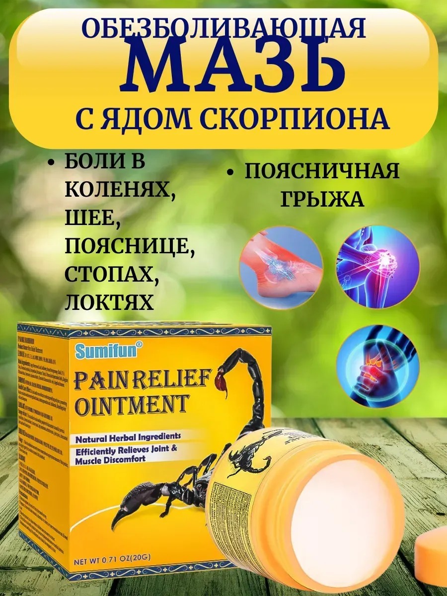Скорпионик — это ваша скорая помощь при боли, воспалении и скованности движений. Благодаря природной силе яда скарпиона, этот бальзам быстро восстанавливает подвижность, улучшает кровообращение и помогает забыть о дискомфорте.