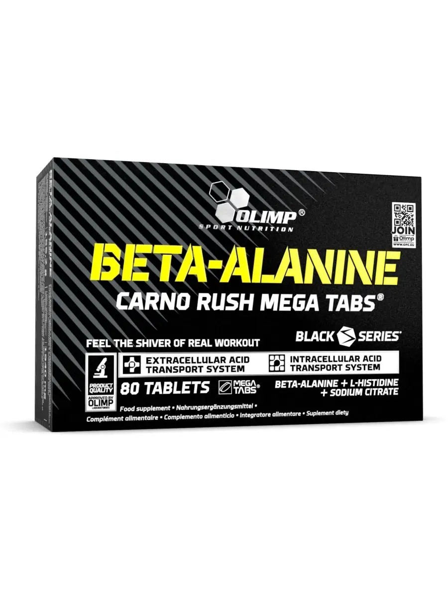 Olimp Beta-Alanine Carno Rush Mega Tabs - время для настоящей тренировки! Это продукт в форме таблеток с точно подобранной порцией бета-аланина и добавками в виде цитрата натрия, L-гистидина HCl и витамина B6. Содержание используемых ингредиентов направлено на оптимизацию работы организма, что позволяет эффективно выполнять тренировочные установки. Сырье, используемое для приготовления БАД, прошло необходимый микробиологический анализ на наличие тяжелых металлов. В сочетании с инновационным оборудованием и комплексной лабораторной базой на фармацевтических заводах Olimp Laboratories это гарантирует безопасность использования продукта, соответствующего мировым стандартам. Основополагающим ингредиентом представленного препарата Olimp Sport Nutrition является, конечно же, бета-аланин. Это соединение относится к группе небелковых аминокислот. Бета-аланин участвует в создании ряда других ингредиентов, в том числе обнаружен в мышцах дипептид - карнозин. Кроме того, эту популярную аминокислоту (бета-аланин) часто используют перед тренировкой из-за того, что она может оказывать благотворное влияние на снижение чувства усталости. Кульминацией формулы Olimp Beta-Alanine Carno Rush Mega Tabs, которая была подготовлена в современном Центре исследований и разработок фармацевтической компании Olimp Laboratories, является оптимальная порция витамина B 6. Этот ингредиент был одной из сильных сторон пищевых добавок на протяжении многих лет, которые призваны поддерживать адаптацию организма к повышенным физическим нагрузкам. Наличие витамина B6 в Olimp Beta-Alanine Carno Rush Mega Tabs обеспечивает такие эффекты, как: помощь в правильном функционировании нервной системы; поддержка в поддержании правильного энергетического обмена и в снижении усталости; регуляция правильного метаболизма белков и гликогена; помощь в правильном метаболизме гомоцистеина. Производитель рекомендует принимать Olimp Beta-Alanine Carno Rush Mega Tabs только в дни тренировок. Рекомендуется принимать по 1 таблетке три раза в день во время еды или перед тренировкой. Таблетку следует запивать большим количеством воды. Примечание: не рекомендуется детям, подросткам, беременным и кормящим женщинам, а также при повышенной чувствительности к любому из ингредиентов. Проглатывание продукта может вызвать легкое покалывание или онемение. Это временный симптом, связанный с сильным действием ингредиента продукта бета-аланина. На здоровье это не влияет. Состав на 3 таблетки: Бета-аланин - 2400 мг, Цитрат натрия - 450 мг (из которых натрий - 101.4 мг), L-гистидин HCl - 150 мг (в том числе: L-гистидин - 121.5), Витамин В6 - 1.05 мг. Ингредиентный состав: наполнитель - целлюлоза; бета-аланин, цитрат натрия, гидрохлорид L-гистидина, антислеживатель - магниевые соли жирных кислот; загуститель - сшитая натрийкарбоксиметилцеллюлоза; антислеживатель - диоксид кремния; пиридоксина гидрохлорид - витамин В6. Сеть магазинов для здоровья, спорта и красоты "Атлетик Фуд".