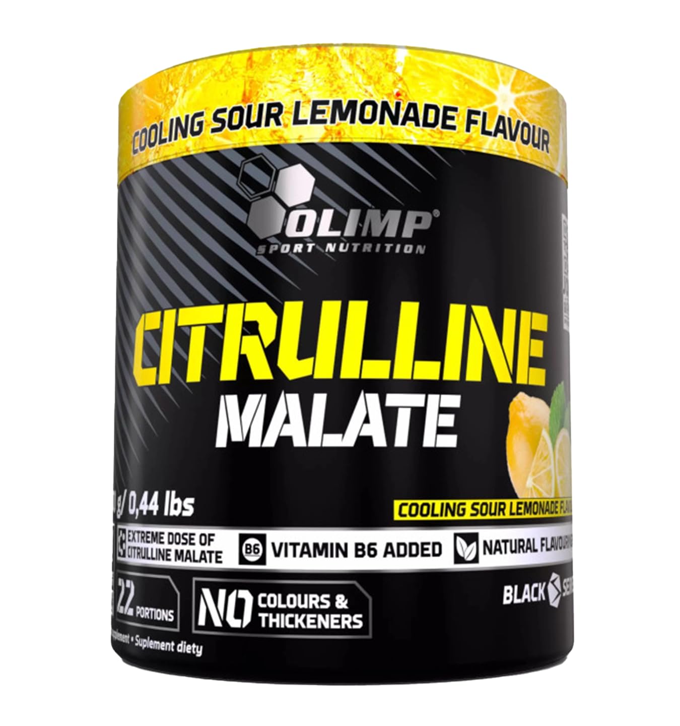 Citrulline malate (200g) is a pre-workout from Olimp Sport Nutrition containing the highest concentration of citrulline malate on the market, supplemented with vitamin B6. Its formula is tailored to the needs of physically active individuals, its composition is simple, and its ingredients are genuinely effective and scientifically proven. This formula is characterized by superior quality and the absence of harmful heavy metals. You'll find up to 8.1g of citrulline malate, including 4.6g of pure citrulline! This amino acid is particularly popular with athletes because it helps improve performance during high-intensity exercise and relieves muscle soreness after training. It also impacts ATP production, thus providing more energy, and it accelerates the elimination of lactic acid from the blood during intense workouts. Vitamin B6, meanwhile, helps reduce fatigue and exhaustion and contributes to the proper functioning of the nervous system and energy metabolism. Plus, this pre-workout has a delicious and refreshing lemonade flavor!