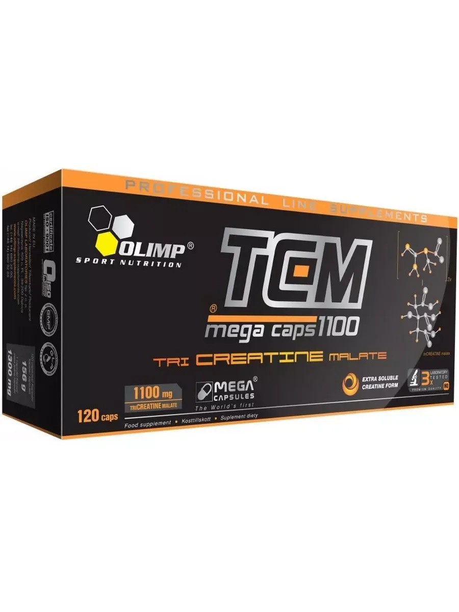 Три-креатин малат — новейшая высокоэффективная форма креатина. Пищевая добавка Олимп оптимально стабильный креатин, разработанный для достижения максимальных результатов при потреблении минимальных дозировок препарата. Трикреатин малат - это особое соединение, состоящее из трёх молекул креатина и одной молекулы яблочной кислоты.