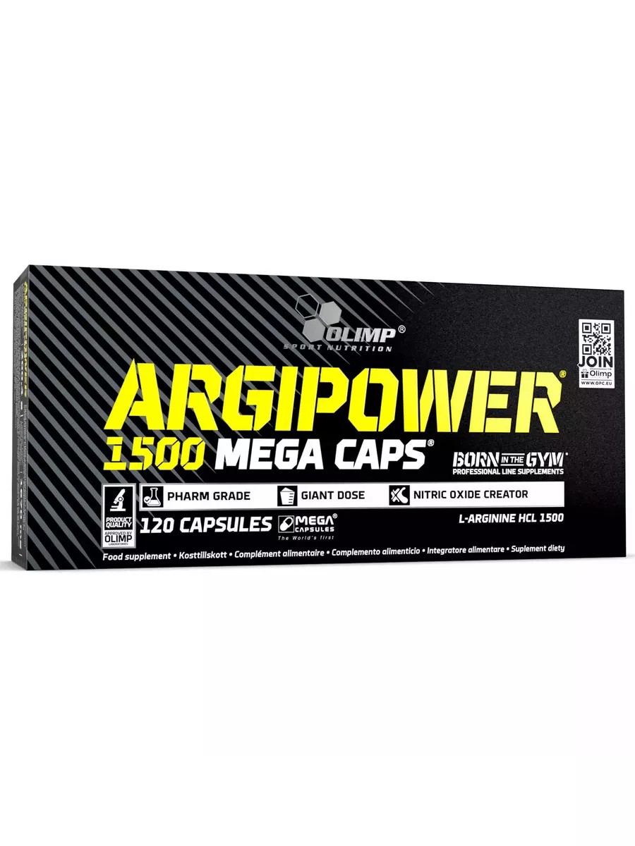 Olimp ArgiPower 1500 Mega Caps is a dietary supplement in capsules with the amino acid L-arginine. L-arginine is an amino acid that plays a role in the creation of active biological nutrients such as nitric oxide (NO). In addition, arginine serves as a donor of the formamidine group in the biosynthesis of creatine. The product is intended for physically active people and highly qualified athletes. It is also intended for sexually active men. Recommended use: 1 capsule daily before training or before activity, with plenty of water. Not suitable for children and adolescents. Composition in 1 capsule: L-Arginine HCl - 1500 mg of which L-arginine - 1230 mg. Ingredients: L-arginine hydrochloride, anti-caking agent (magnesium salts of fatty acids), capsule (gelatin). The "Athletic Food" chain of stores specializing in health, sports, and beauty.