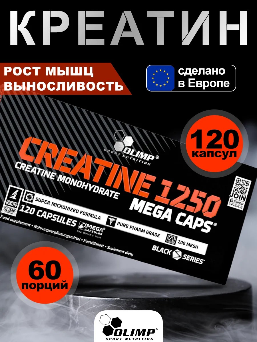 Olimp Creatine 1250 Mega Caps – Креатин моногидрат 120 капсул для роста мышц, силы и выносливости
