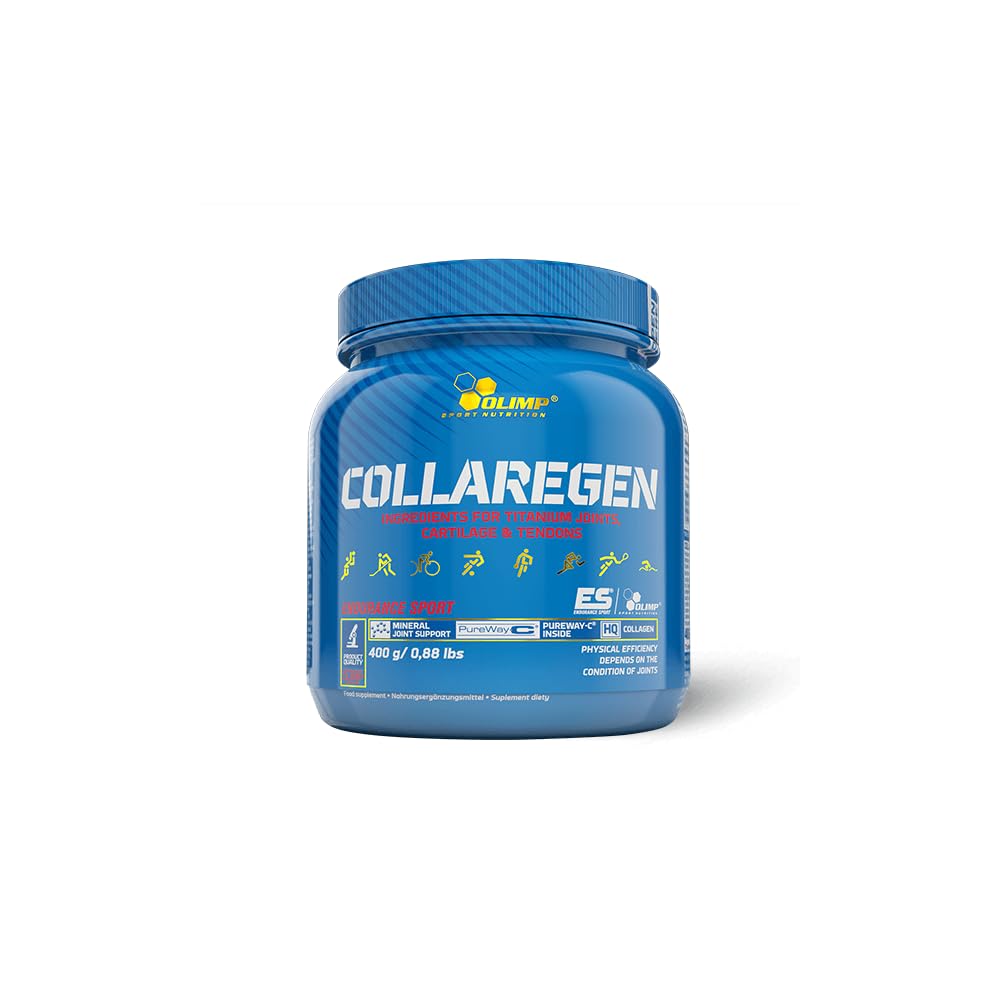 Collaregen is a high-quality, high-dose collagen powder formula designed for those who want to maintain the health of their connective tissues, namely tendons, skin, and cartilage. After a certain age, or during periods of intense physical activity, joints are put under considerable stress, and it is not uncommon for natural collagen production to become insufficient to guarantee optimal tissue conditions. To prevent excessive and rapid degradation, daily collagen intake can be very beneficial. Collaregen contains 5g of collagen per serving, as well as vitamin C, manganese, and copper. This powder supplement is available in Lemon and Orange flavors. INGREDIENTS Ingredients: Collagen, malic acid, citric acid – acidity regulators, maltodextrin – bulking agent flavorings, microencapsulated L-ascorbic acid (Pure Way-C) – vitamin C Sodium cyclamate, sweeteners: sucralose manganese bisglycinate (Albion manganese bisglycinate amino acid chelated), copper bisglycinate (Albion copper bisglycinate amino acid chelated) colors: beta-carotene (orange flavor), riboflavin (lemon flavor). DIRECTIONS FOR USE Take 1 to 2 doses per day (1 dose 1 2 scoop) mixed with 100 ml of water. SAFETY WARNING Food supplements should be used as part of a healthy lifestyle and not as a substitute for a varied and balanced diet. Do not exceed the recommended daily dose. Keep out of reach of children. Not recommended for pregnant or breastfeeding women and adolescents. Store in a cool, dry place, tightly closed, in its original packaging, away from heat and light. Allergens: Produced in a facility that also processes eggs, milk proteins, soy, tree nuts, gluten, peanuts, fish, and shellfish ingredients. See moreOlimp Sport Nutrition - Collaregen (400g) - Collagène - Santé des articulations - CitronDESCRIPTION DU PRODUIT DESCRIPTION DU PRODUIT Collaregen est une formule en poudre de collagène de qualité hautement dosé, destinée aux personnes qui souhaitent préserver la bonne santé de leurs tissus conjonctifs, à savoir les tendons, la peau, le cartilage. Après un certain âge, ou dans le cadre d'une activité sportive intensive, les articulations sont mises à rude épreuve, et il n'est pas rare que la production naturelle de collagène ne soit plus suffisante pour garantir des conditions optimales pour les tissus. Afin d'éviter une dégradation trop importante et trop rapide, la consommation journalière de collagène peut s'avérer très intéressante. Collaregen contient 5 g de collagène par dose, de la vitamine C ainsi que du manganèse et du cuivre. Ce supplément en poudre est proposé en parfums Citron et Orange. INGRÉDIENTS Ingrédients : Collagène, acide malique, acide citrique – régulateurs d'acidité, maltodextrine – agent de charge arômes, acide L-ascorbique microencapsulé (Pure Way-C)– vitamine C cyclamate de sodium, édulcorants: sucralose mangnèse bisglycinate (Albion manganèse bisglycinate d'acide aminé chélaté), cuivre bisglycinate (Albion cuivre bisglycinate d'acide aminé chélaté) colorants: béta-carotène (parfum orange), riboflavine (parfum citron). MODE D'EMPLOI Prendre 1 à 2 doses par jour (1 dose 1 2 dosette) mélangé à 100ml d'eau. AVERTISSEMENT DE SÉCURITÉ Les compléments alimentaires doivent être utilisés dans le cadre d'un mode de vie sain et ne pas être utilisés comme substituts d'un régime alimentaire varié et équilibré. Ne pas dépasser la dose journalière recommandée. Tenir hors de portée des enfants. Déconseillé aux femmes enceintes ou allaitantes et aux adolescents. À conserver dans un endroit frais et sec, bien fermé, dans son emballage d'origine, à l'abri de la chaleur et de la lumière. Allergènes : Produit dans une usine traitant des œufs, des protéines de lait, du soja, des fruits à coque, du gluten, des arachides, du poisson et des ingrédients à base de crustacés. Voir plus
