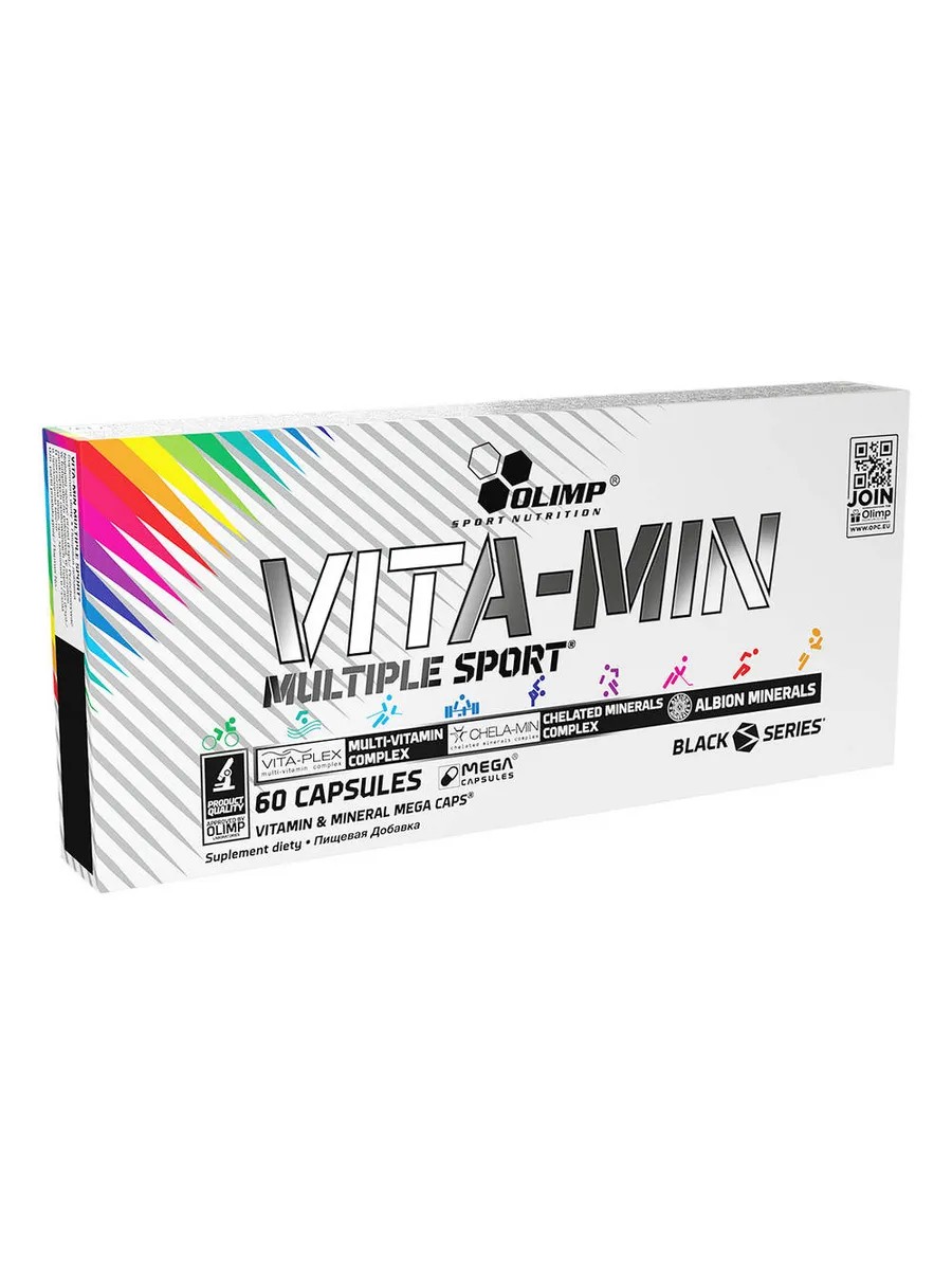 Olymp's Vita-Min Multiple Sport Mega Caps vitamin and mineral complex is designed specifically for athletes and physically active individuals. Taking two capsules of this complex daily will ensure optimal body function and the proper functioning of all biochemical processes and reactions thanks to the carefully balanced dose of ingredients. The first capsule contains a blend of vitamins, natural antioxidants, and other secondary plant substances in Vita Plex Sport, while the second capsule contains chelated minerals in Chela-Min Sport, which are more readily absorbed than inorganic minerals.