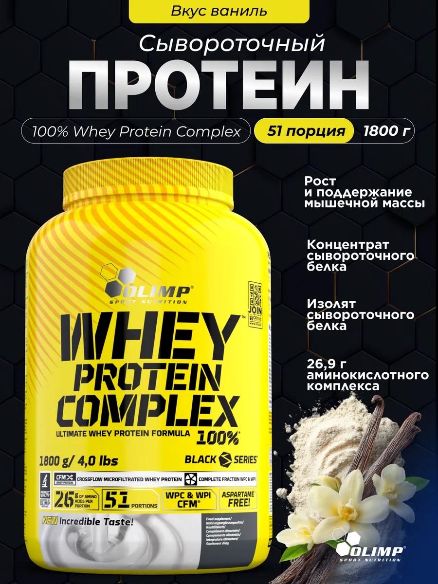 Сывороточный протеин Olimp Whey Protein Complex 100% от Olimp Sport Nutrition — это спортивное питание премиум-класса, разработанное специально для набора массы и веса. Продукт сочетает два вида белка: протеин концентрат и изолят сывороточного белка (whey protein isolate). Мультипротеин является идеальным выбором для спортсменов, которым важны высокое качество и максимальный результат.