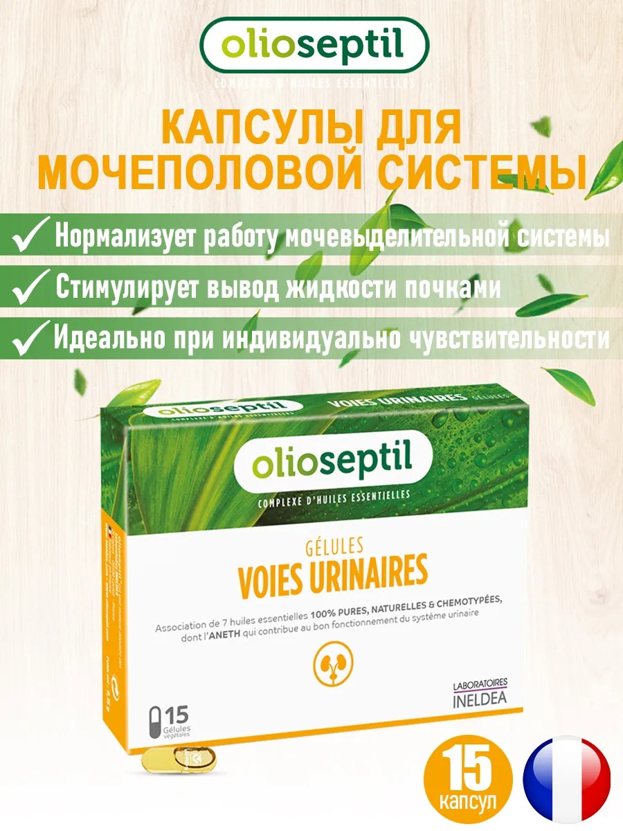 | Торговое наименование | биологически активная добавка "Олиосептил воюринас" (Olioseptil voies urinaires) (капсулы массой 610 мг) |
