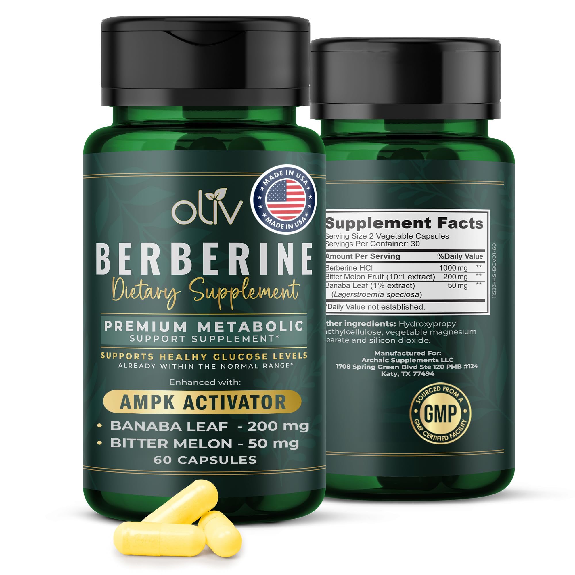 Each easy-to-swallow oliv Berberine capsule is meticulously manufactured in a state-of-the-art facility, ensuring the highest standards of quality and efficacy.