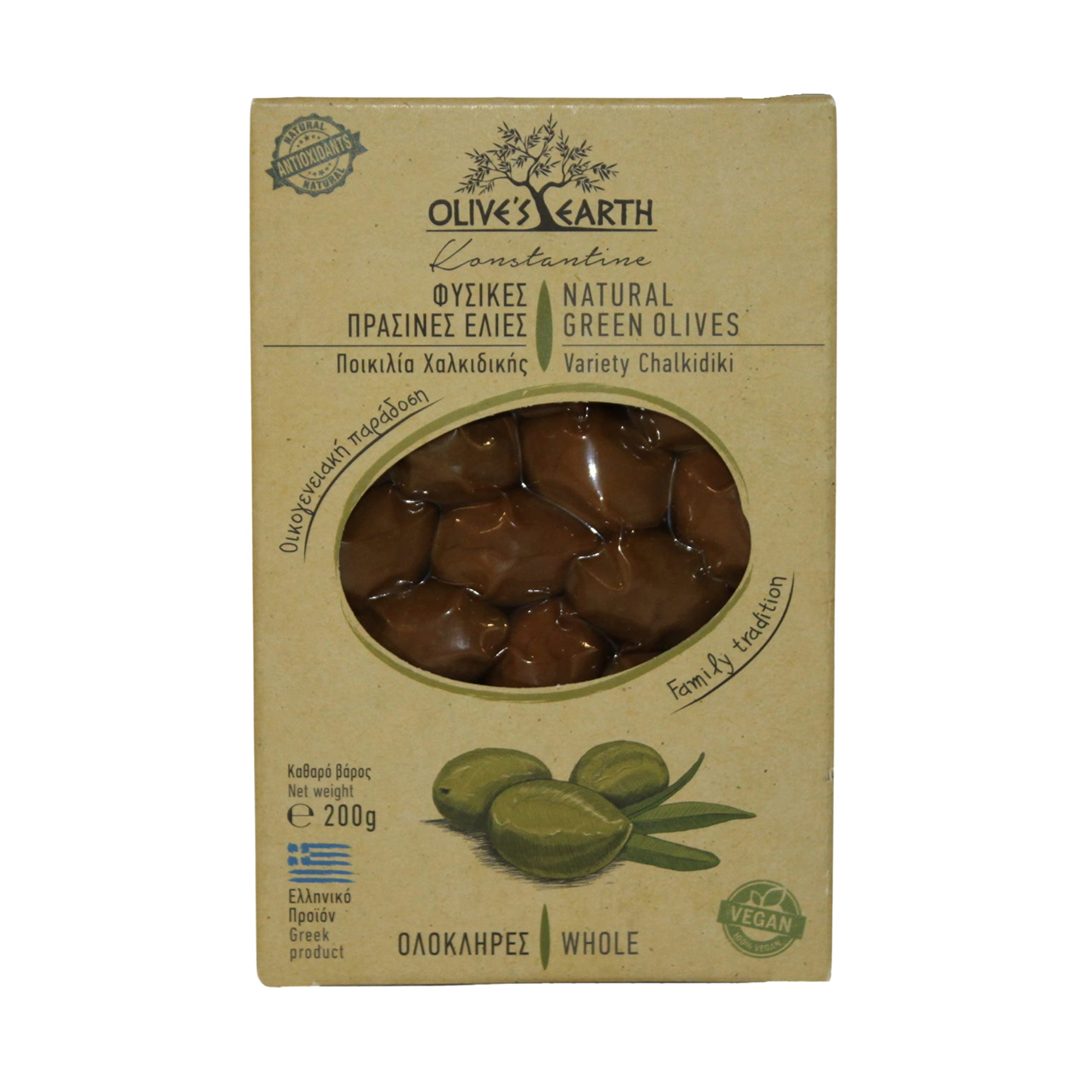 Original Chalkidiki green olives with firm flesh and a rich taste. Important source of phenols, healthy fats, antioxidants, iron, copper and calcium. Naturally rich in fiber and vitamin E. 100 natural, no preservatives, no colorings, GLUTEN-free and suitable for vegans. All raw materials are produced in Greece: 100 Greek product. The company implements a food safety management system certified according to ISO 22000. Enjoy them plain as a healthy snack. Top your salads. Offer them as an aperitif with tsipouro, tsikoudia or ouzo for the ultimate Greek experience. INGREDIENTS Natural non-bitter green olives, sunflower oil, water, salt. Acidity regulator: lactic acid, citric acid. DIRECTIONS Eat them raw or add them to your salads for more flavor. The olives are full of flavor and intense aroma, even for the most demanding olive connoisseurs. All raw materials are produced in Greece: 100 Greek product. The company implements a food safety management system certified in accordance with ISO 22000. 100 natural, without preservatives, colorings, gluten-free, and suitable for vegetarians. Naturally rich in fiber and vitamin E. An important source of phenols, healthy fats, antioxidants, iron, copper, and calcium. Original green olives from Chalkidiki with firm flesh and a rich flavor. Olives vertes originales Chalkidiki à la chair ferme et au goût riche. Source importante de phénols, de graisses saines, d'antioxydants, de fer, de cuivre et de calcium. Naturellement riches en fibres et en vitamine E. 100 naturelles, sans conservateur, sans colorant, sans GLUTEN et adaptées aux végétaliens. Toutes les matières premières sont produites en Grèce : 100 produit grec. La société met en œuvre un système de gestion de la sécurité alimentaire certifié selon la norme ISO 22000.Savourez-les nature comme un en-cas sain. Garnissez vos salades. Offrez-les en apéritif avec du tsipouro, du tsikoudia ou de l'ouzo pour une expérience grecque ultime. INGRÉDIENTS Olives vertes non amères naturelles, huile de tournesol, eau, sel. Régulateur d'acidité : acide lactique, acide citrique. MODE D'EMPLOI Mangez-les crus ou ajoutez-les à vos salades pour plus de goût. Les olives sont pleines de goût et d'arôme intense, même pour les connaisseurs d'olives les plus exigeants. Toutes les matières premières sont produites en Grèce : 100 produit grec. La société met en œuvre un système de gestion de la sécurité alimentaire certifié conforme à la norme ISO 22000. 100 naturelles, sans conservateur, sans colorant, sans GLUTEN et convenant aux végétariens. Naturellement riche en fibres et en vitamine E. Source importante de phénols, de graisses saines, d'antioxydants, de fer, de cuivre et de calcium. Olives vertes originales de Chalkidiki à la chair ferme et au goût riche.