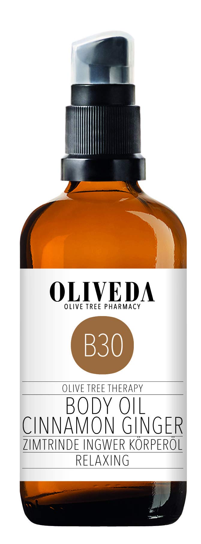 The 100 % organic body oil is the perfect moisture and nutrient dispenser and, due to the wafer-fine texture, moves completely into the skin.Highly effective, multi-award-winning Arbequina Extra Vergine olive oil and fresh olive leaf cell elixir upholstery, smoothing and ensuring velvet soft and tight skin.Cinnamon bark extract gives a cozy warmth while ginger provides new energy and arouses the senses.The fresh cell elixir from the olive leaf also has a calming effect on irritated skin. Instructions Massage well every day and in the evening.You will receive the best results if you always use the body oil after swimming or showering.satisfaction - 3 months of money back guarantee - We at Oltaueda are convinced of our products.If you are not satisfied in any way and meadow, write us an email and we will refund the entire purchase price.Nature & animal test -free - we at Oliveda only use the best ingredients and of course are free of animal testing.In our own nature reserve in Andalusia, our eco-certified mountain olive trees grow in harmony with nature.We rely on biodynamic and above all sustainable agriculture.Relaxation for the senses - cinnamon bark extract gives a cozy warmth while ginger provides new energy and arouses the senses.A relaxing, soothing body oil, which has a concentration -promoting and invigorating effect on the simultaneous concentration and invigorating.Highly active oil-highly effective, multi-award-winning Arbequina Extra Vergine olive oil as well as fresh olive leaf cell elixir upholstery, smoothing and ensuring velvet-soft and tight skin.100 % organically natural - 100 % organic body oil is the perfect moisture and nutrient dispenser and, due to the wafer -fine texture, is completely inserted into the skin. Das zu 100 % organische Körperöl ist der perfekte Feuchtigkeits- und Nährstoffspender und zieht, aufgrund der hauchfeinen Textur, vollständig in die Haut ein. Hochwirksames, mehrfach prämiertes Arbequina Extra Vergine Olivenöl sowie frisches Olivenblatt-Zellelixier polstern, glätten und sorgen fu¨r samtweiche und straffe Haut. Zimtrindenextrakt verleiht eine wohlige Wärme während Ingwer neue Energie spendet und die Sinne erweckt. Das frische Zellelixier aus dem Olivenblatt wirkt sich zudem beruhigend auf gereizte Haut aus. GEBRAUCHSANWEISUNG Täglich morgens und abends gut einmassieren. Die besten Resultate erhalten Sie, wenn Sie das Körperöl immer nach dem Baden oder Duschen anwenden.ZUFRIEDENHEITS - 3 MONATE GELDZURÜCKGARANTIE - Wir von OLIVEDA sind von unseren Produkten überzeugt. Sollten Sie auf irgendeine Art und Wiese nicht zufrieden sein, schreiben Sie uns eine E-Mail und wir erstatten Ihnen den GESAMTEN Kaufpreis. NATURNAH & TIERVERSUCHSFREI - Wir von OLIVEDA verwenden nur die besten Inhaltsstoffe und sind natürlich tierversuchsfrei. In unserem eigenen Naturreservat in Andalusien wachsen unsere öko-zertifizierten Bergolivenbäume im Einklang mit der Natur. Wir setzten auf biologisch-dynamische und vor allem nachhaltige Landwirtschaft. ENTSPANNUNG FÜR DIE SINNE - Zimtrindenextrakt verleiht eine wohlige Wärme während Ingwer neue Energie spendet und die Sinne erweckt. Ein entspannendes, beruhigendes Körperöl, das durch die Duftkomposition gleichzeitig konzentrationsfördernd und belebend wirkt. HOCHAKTIVES ÖL- Hochwirksames, mehrfach prämiertes Arbequina Extra Vergine Olivenöl sowie frisches Olivenblatt-Zellelixier polstern, glätten und sorgen für samtweiche und straffe Haut. 100 % ORGANISCH NATÜRLICH - Das zu 100 % organische Körperöl ist der perfekte Feuchtigkeits- und Nährstoffspender und zieht, aufgrund der hauchfeinen Textur, vollständig in die Haut ein.Oliveda B30 - Körperöl Zimtrinde Ingwer | Relaxing | natürliches Pflegeöl | Pflege und Schutz vor Trockener haut | stimulierend & entspannend - 100 ml