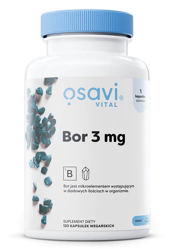 Dietary supplement in the form of a hard capsule with boron-sodium borate. Boron is an important trace element found in small quantities in the body. Little is known about the effects of boron. However, it is important to know that this element is essential for proper bodily function. Reducing its deficiency can offer many benefits, both for women and men. With the Bor 3 mg dietary supplement, you can ensure sufficient levels of this substance in your body. Boron (Latin borium) is a trace element found in small quantities in the body. Although not as well-known as other micronutrients, its properties are essential for proper functioning in everyday life. A boron deficiency can disrupt the functioning of individual systems and reduce the body's overall condition. Boron 3 mg contains a safe dose of the element, so you can feel the benefits of supplementation. One capsule corresponds to the recommended daily allowance of boron: 3 mg. The product comes in the form of sodium borate (borax) – it is absorbed in the intestines. However, it is mainly eliminated in the urine. The discovery of boron is attributed to three chemists. Joseph Gay-Lussac and Louis Jacques Thénard obtained the root during their studies in Paris in 1808. At the same time, Humphry Davy also did so in London. INGREDIENTS: inulin, husk (hydroxypropyl methylcellulose), sodium borate.Its mere presence in the daily diet guarantees better concentration and reaction speed and also improves motor coordination. Boron also affects the metabolism of minerals and vitamins. This element has a very great influence on improving memory and intellectual functions.Osavi Bor, 3 mg - 120 veganistische capsules Voedingssupplement in de vorm van een harde capsule met boor-natriumboraat. Borium is een belangrijk sporenelement dat in kleine hoeveelheden in het lichaam voorkomt. Over de werking van boor wordt niet veel gezegd. Het is echter belangrijk om te weten dat dit een essentieel element is voor een goede werking van het lichaam. Het verminderen van het tekort kan veel voordelen opleveren, zowel voor vrouwen als voor mannen. Met het Bor 3 mg voedingssupplement kun je ervoor zorgen dat de stof in je lichaam voldoende is. Borium (Latijnse borium) is een sporenelement dat in kleine hoeveelheden in het lichaam voorkomt. Hoewel niet zo bekend als andere micronutriënten, zijn eigenschappen essentieel voor een goede werking in het dagelijks leven. Een boriumtekort kan de werking van de afzonderlijke systemen verstoren en de algemene conditie van het lichaam verminderen. Borium 3 mg bevat een veilige portie van het element, zodat je de voordelen van suppletie kunt voelen. Eén capsule komt overeen met de aanbevolen dagelijkse hoeveelheid boor: 3 mg. Het product komt in de vorm van natriumboraat (borax) – het wordt in de darm opgenomen. Het wordt echter vooral via de urine verwijderd. De ontdekking van boor wordt toegeschreven aan drie chemici. Joseph Gay-Lussac en Louis Jacques Thénard kregen de wortel tijdens hun studies in 1808 in Parijs. Tegelijkertijd heeft Humphry Davy dit in Londen ook gedaan door Humphry Davy INGREDIËNTEN inuline, omhulsel (hydroxypropylmethylcellulose), natriumboraat.Alleen al zijn aanwezigheid in de dagelijkse voeding garandeert een betere concentratie en reactiesnelheid en verbetert bovendien de motorische coördinatie. Borium beïnvloedt ook het metabolisme van mineralen en vitaminen. Dit element heeft een zeer grote invloed op het verbeteren van geheugen en intellectuele functies.