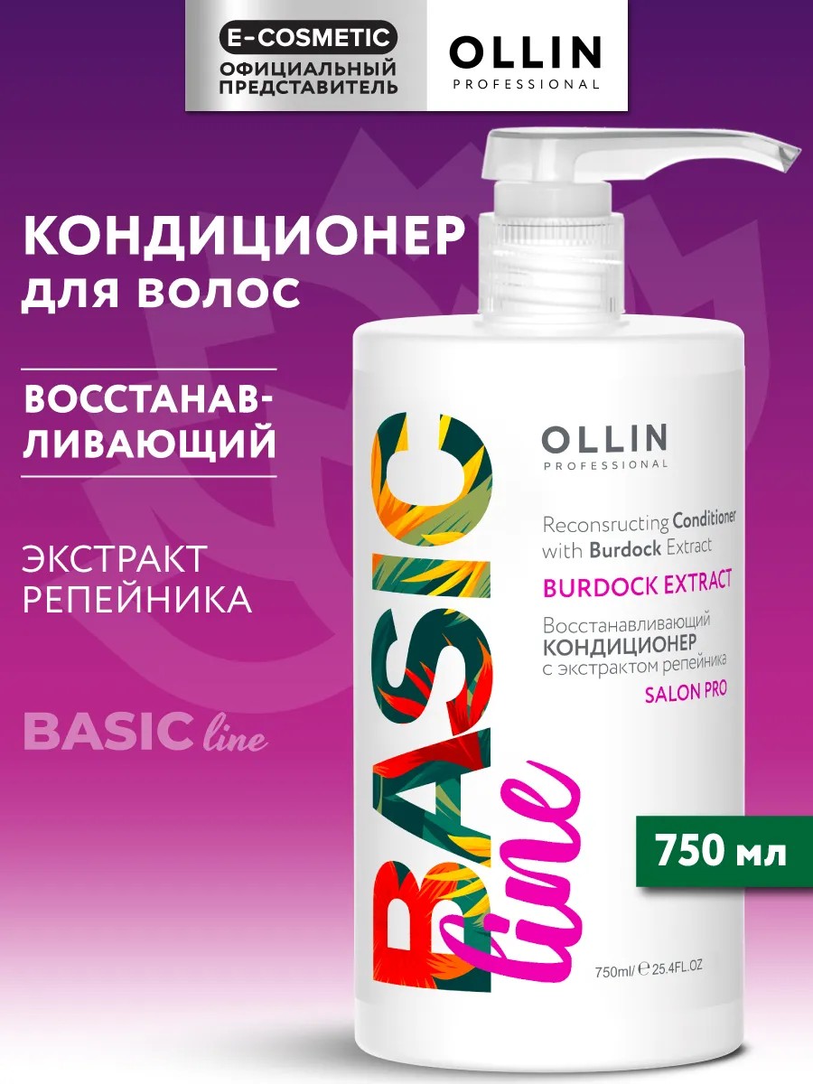 The OLLIN BASIC LINE professional restorative conditioner is designed to care for weakened hair prone to breakage. It is suitable for normal, dry, and damaged hair types. The formula, based on burdock and oat extracts, strengthens the hair structure, improves scalp nutrition, stimulates growth, and protects from external influences.