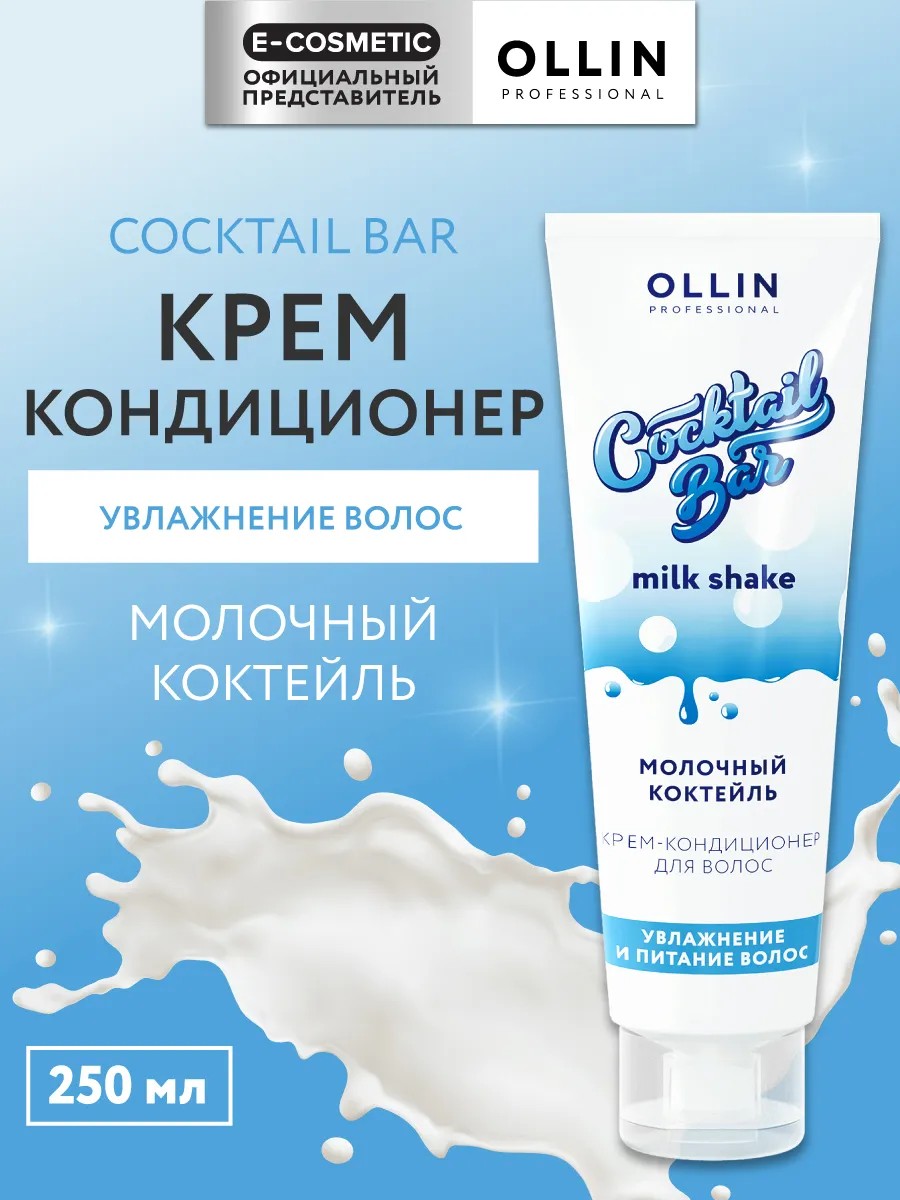 OLLIN PROFESSIONAL COCKTAIL BAR "Milkshake" professional cream conditioner is designed for intensive care of dry, weakened, and damaged hair. Its delicate texture and balanced formula with milk proteins strengthens the hair structure, restores elasticity, and adds natural bounce. Milk extract nourishes the hair, helping to restore smoothness and softness.