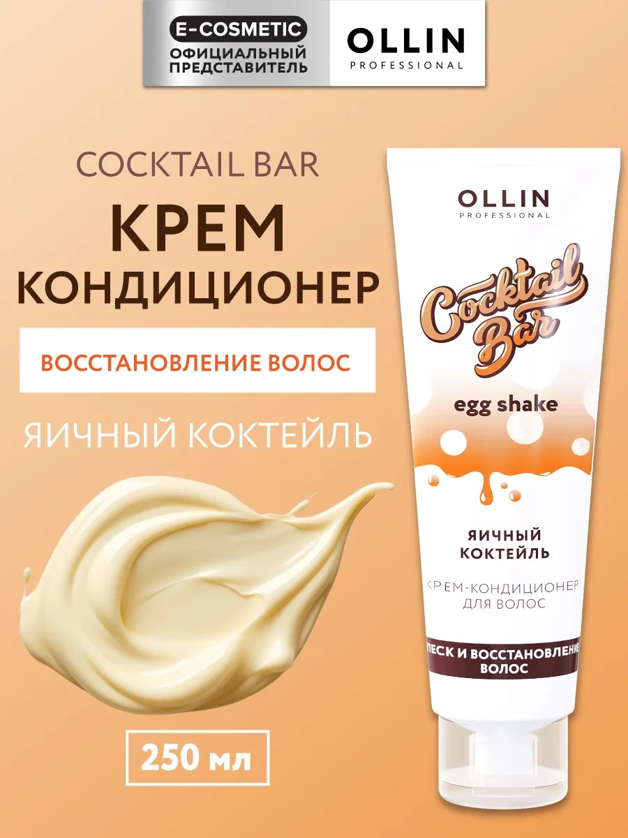 OLLIN COCKTAIL BAR Professional Cream Conditioner "Egg Cocktail" is designed to restore damaged, dull, and weakened hair. Ideal for strands that have lost their elasticity, shine, and smoothness after heat styling or coloring. Egg yolk extract saturates hair with proteins, strengthens along the entire length, and helps smooth the structure.
