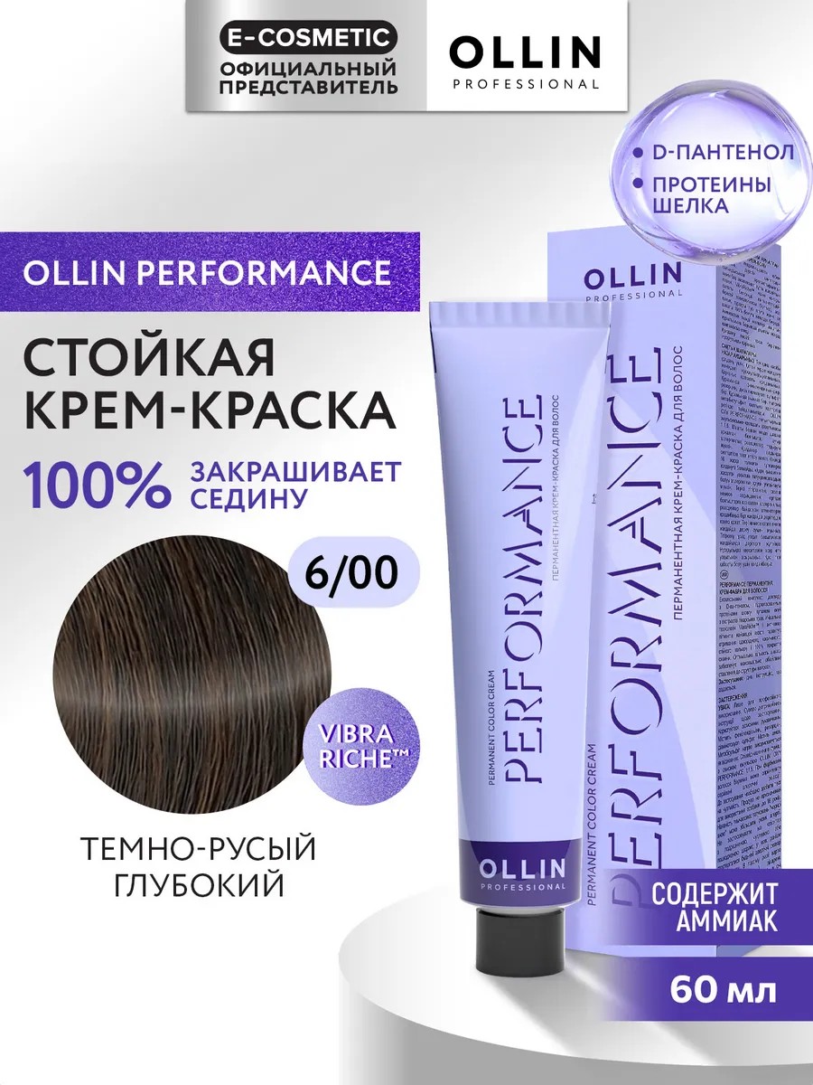 Ollin Professional Краска для волос PERFORMANCE 6.00, 60 мл