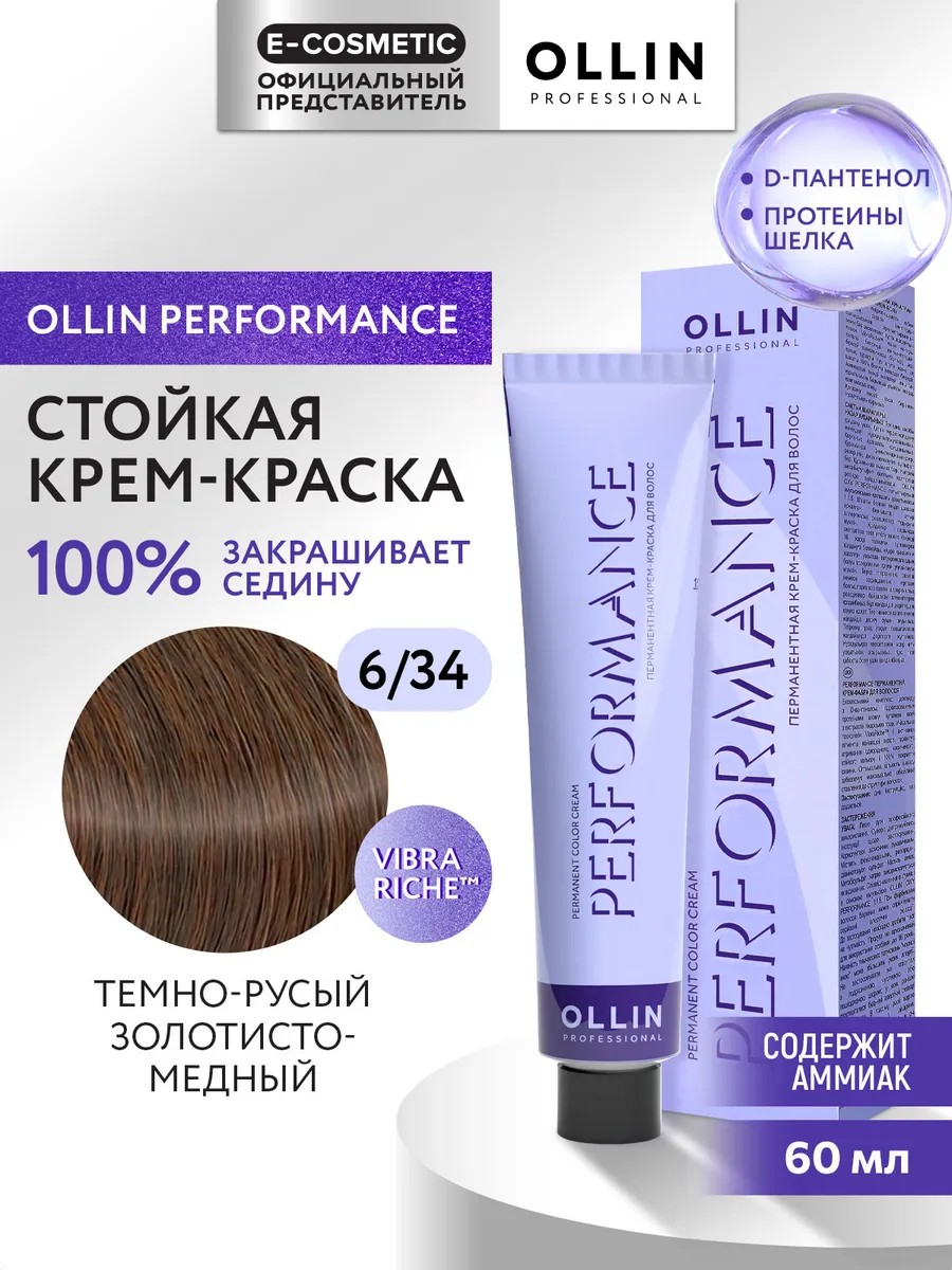Ollin Professional Краска для волос PERFORMANCE 6.34, 60 мл