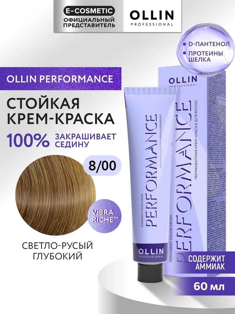 Ollin Professional Краска для волос PERFORMANCE 8.00, 60 мл