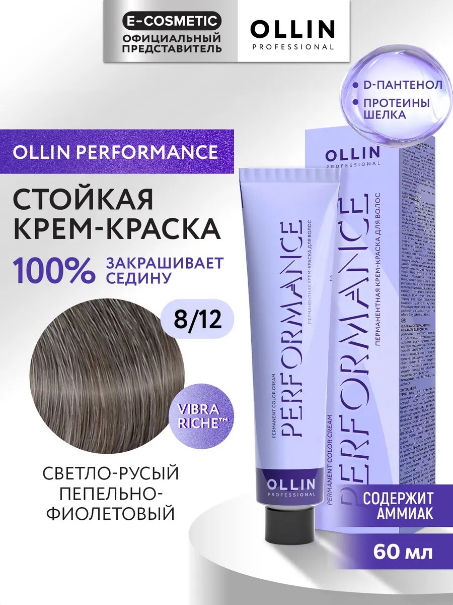 Профессиональная крем-краска OLLIN PERFORMANCE подходит для всех типов волос, обеспечивает равномерный и глубокий цвет на натуральных, окрашенных, обесцвеченных, седых и мелированных волосах. Уникальная технология VIBRA RICHE и активных пигментов высочайшего качества оттеночной краски гарантирует получение однородного, более насыщенного, стойкого цвета и 100% покрытие седины. Минимальное количество аммиака обеспечивает максимально бережное отношение к структуре волос. Перманентная краска обогащена компонентами, которые укрепляют волосы, защищают кожу головы и придают блеск. Пантенол глубоко питает и увлажняет, помогая сохранить мягкость и эластичность. Благодаря составу тонирующего красителя окрашивание проходит комфортно, нет раздражения и ощущения сухости после процедуры. Оттенок сохраняется надолго, не тускнеет и не вымывается.