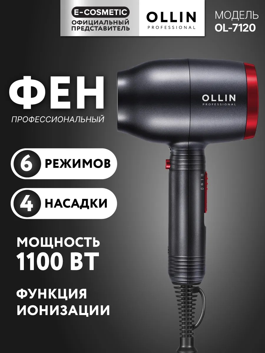 Профессиональный фен для укладки волос OLLIN OL-7120 создан для быстрой сушки и создания стильных причесок. Благодаря керамическому покрытию он распределяет тепло равномерно, что помогает защитить волосы от перегрева и сохранить их естественную мягкость. Подходит для всех типов от тонких и ослабленных до густых и плотных. Особенно для окрашенных и склонных к сухости локонов, так как бережно воздействует, сохраняя здоровье структуры. Функция ионизации устраняет статическое напряжение, делая волосы гладкими, блестящими и послушными. Три температурных режима и два уровня скорости позволяют выбрать оптимальные настройки: щадящая сушка для поврежденных прядей, интенсивный поток для густых волос и холодный воздух для надежной фиксации укладки. В комплект входят три насадки-концентратора для направленного воздушного потока и диффузор, который идеально подходит для создания объема и проработки кудрей. Продуманный дизайн делает использование удобным: длинный трехметровый шнур дает свободу движения, а петля для подвешивания облегчает хранение. Стайлер решает сразу несколько задач: ускоряет сушку, убирает пушистость, помогает формировать локоны, придает прикорневой объем и фиксирует результат. В конечном итоге волосы выглядят ухоженными, сохраняют естественный блеск, становятся гладкими и послушными, а прическа держит форму долгое время, создавая эффект салонного ухода дома.Технические характеристики: тип мотора АС, мощность 1000-1100 Вт, напряжение питания 220 - 240 В, частота сети 50/60 Гц, длина сетевого шнура 3м. Вес: 520 гр.