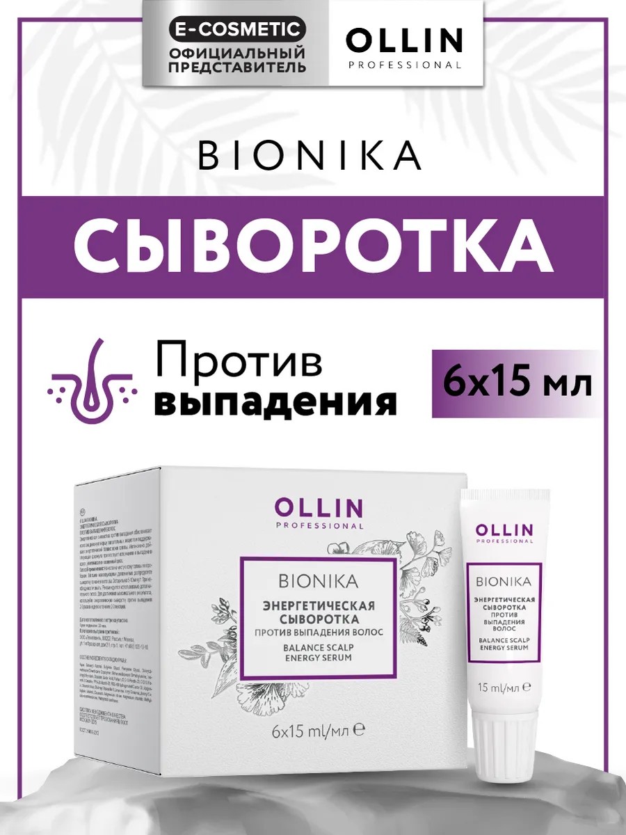 Энергетическая сыворотка OLLIN BIONIKA против выпадения волос— интенсивный уход для тонких, ослабленных, склонных к потере волос. Специально разработана для восстановления плотности и укрепления корней, подходит для всех типов, особенно эффективна при склонности к ломкости и сниженной густоте. Композиция активных компонентов стимулирует питание волосяных луковиц и активизирует микроциркуляцию кожи головы. Креатин усиливает внутреннюю структуру каждого волоса, делая его более прочным, а увлажняющие вещества сохраняют оптимальный баланс влаги, предотвращая сухость и повреждения. Растительные экстракты в составе способствуют снижению выпадения, пробуждают «спящие» фолликулы и нормализуют функции кожи головы. Сыворотка обволакивает волосы, придавая шелковистость, ухоженный вид и визуальный объём.