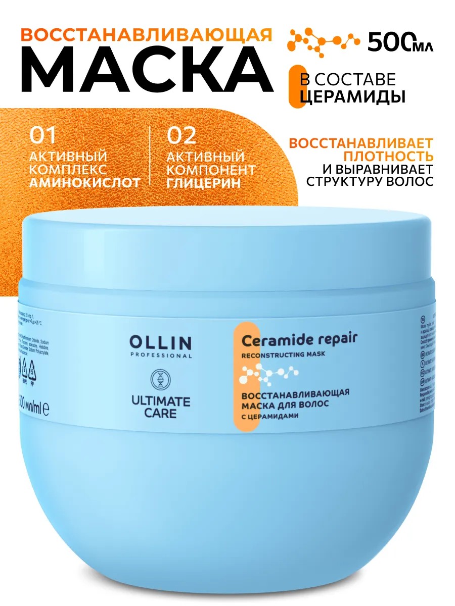 | Комплектация | Маска восстанавливающая для волос с церамидами ULTIMATE CARE, 500мл - 1 шт |