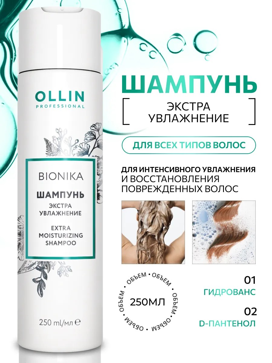 BioNika Экстра увлажнение 250 мл Ollin - это не просто шампунь, это нежный и мощный инструмент для ухода за волосами. Независимо от цвета волос или типа структуры, этот шампунь будет верным спутником на пути к идеальному уходу.