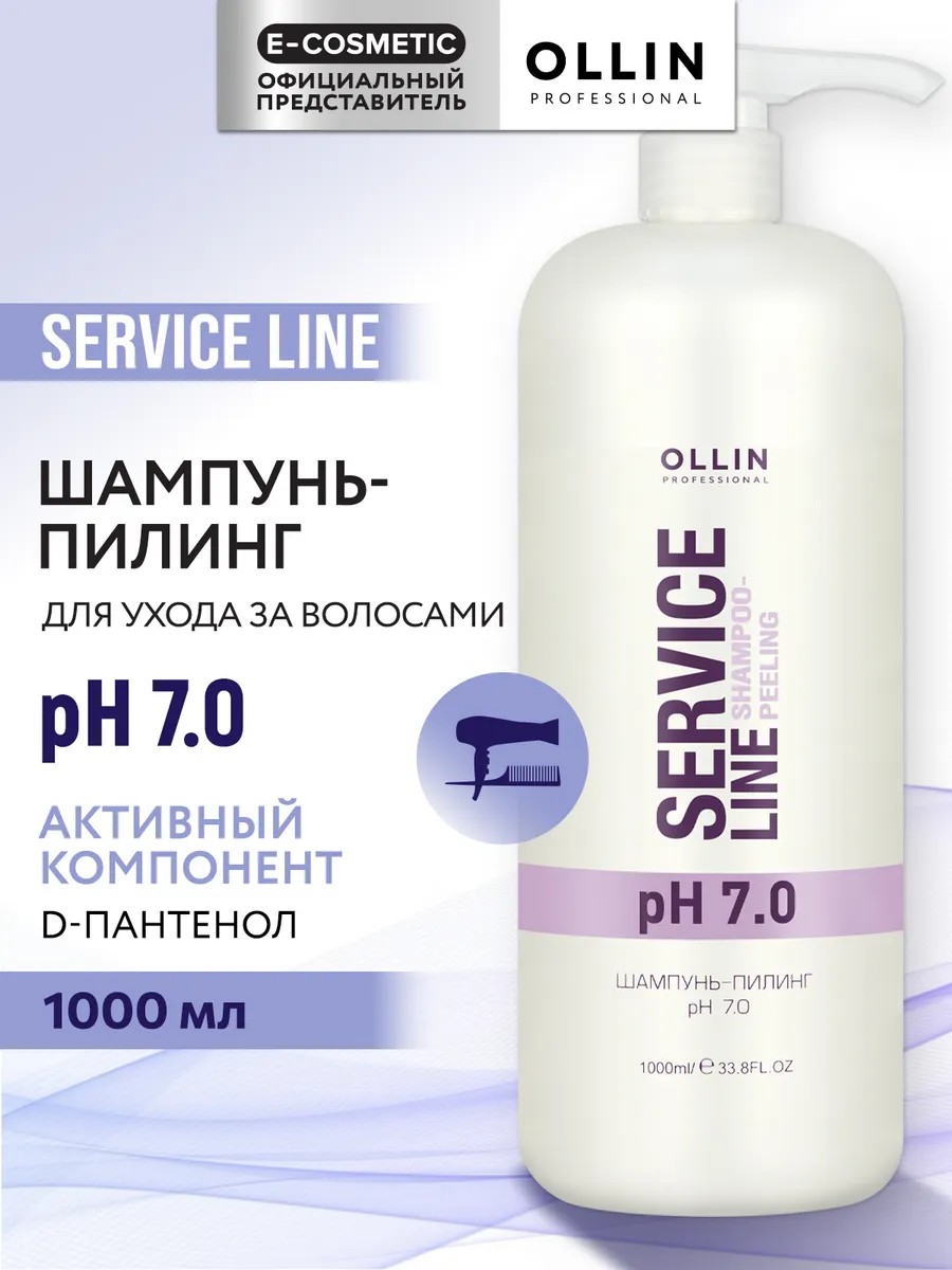 OLLIN PROFESSIONAL SERVICE LINE pH 7.0 Professional Peeling Shampoo deeply cleanses hair and scalp, removing styling product residue and excess sebum. Its unique formula helps prepare hair before perming or coloring, and provides gentle care after bleaching. This pH 7.0 shampoo gently cleanses without disturbing the natural balance of hair and scalp.