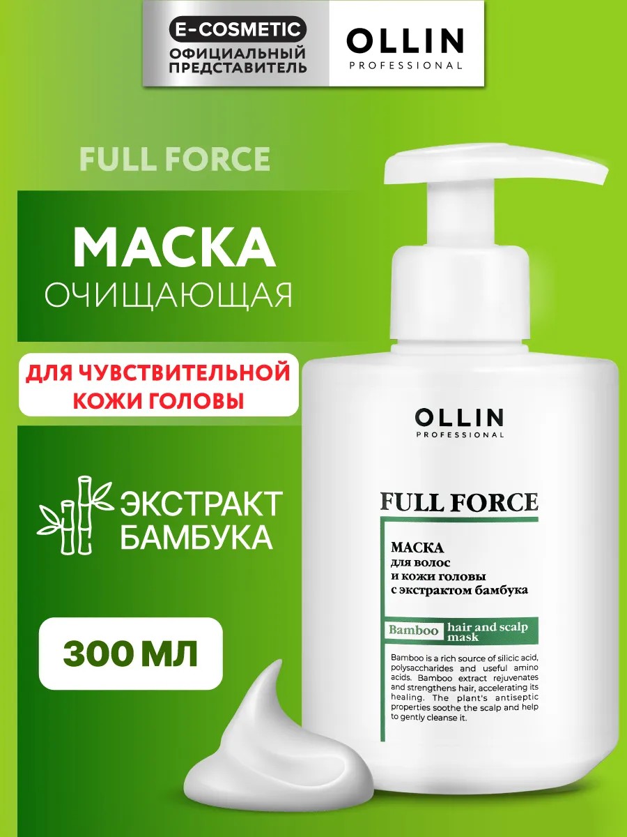 The OLLIN FULL FORCE professional strengthening mask with bamboo extract is professional hair and scalp care. The formula combines natural extracts and modern active ingredients to restore, strengthen, and stimulate growth. The mask actively nourishes the roots, strengthens along the entire length, and increases elasticity.