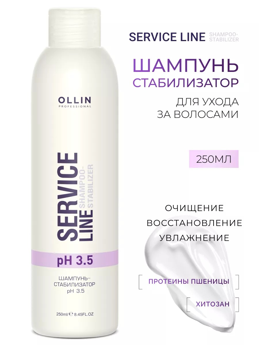 Благодаря удачно подобранному сбалансированному составу Шампунь-стабилизатор рН 3.5 OLLIN SERVICE LINE нормализует рН, увлажняет волосы и кожу головы, восстанавливает структуру прядей по всей длине.