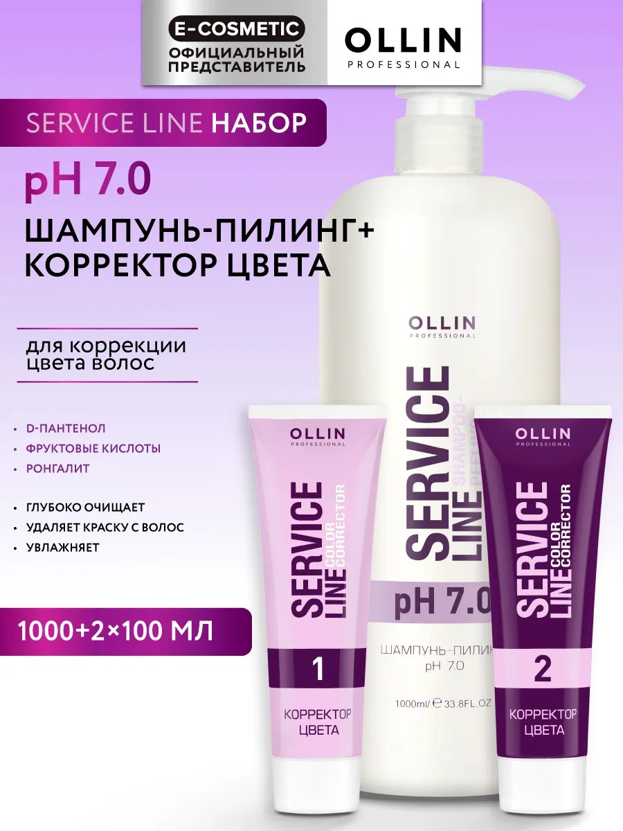 Ollin Professional Набор для волос шампунь-пилинг и корректор цвета