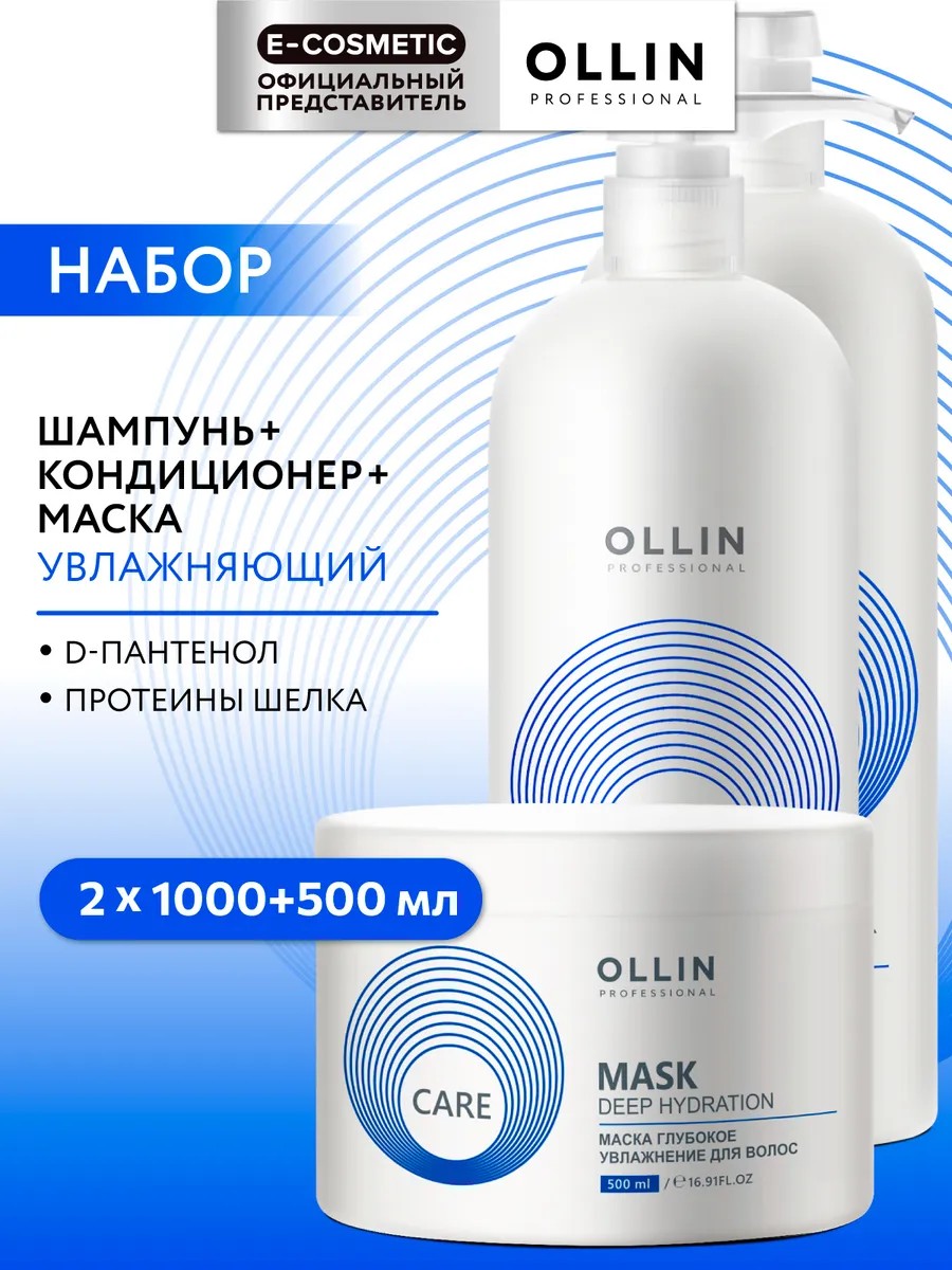 Профессиональный набор CARE для глубокого увлажнения и питания сухих, тусклых и обезвоженных волос. В комплект входят шампунь, кондиционер и маска Ollin Professional большого объёма, разработанные для деликатного очищения и восстановления водного баланса.