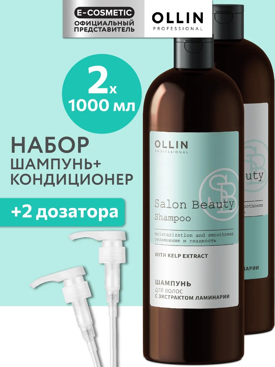 Профессиональный набор OLLIN PROFESSIONAL SALON BEAUTY с экстрактом ламинарии — это идеальный комплект для бережного и эффективного ухода за волосами. Включает в себя шампунь и кондиционер, которые обеспечивают деликатное очищение и восстановление волос, а также два дозатора для удобного использования.