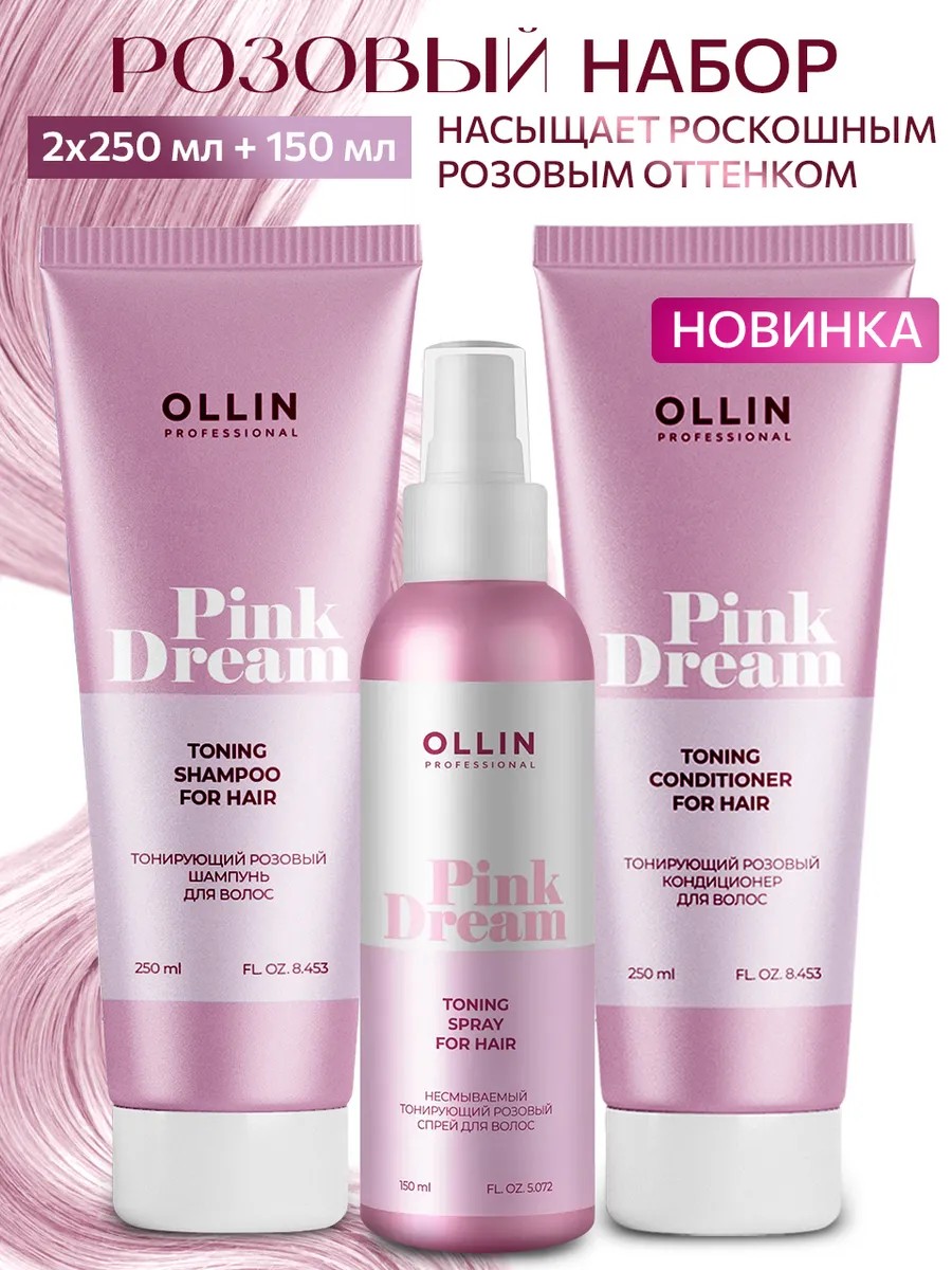 | Package Contents | PINK DREAM Toning pink hair spray 150 ml OLLIN - 1 pc.; PINK DREAM Toning pink hair shampoo 250 ml OLLIN - 1 pc.; PINK DREAM Toning pink hair conditioner 250 ml - 1 pc. |