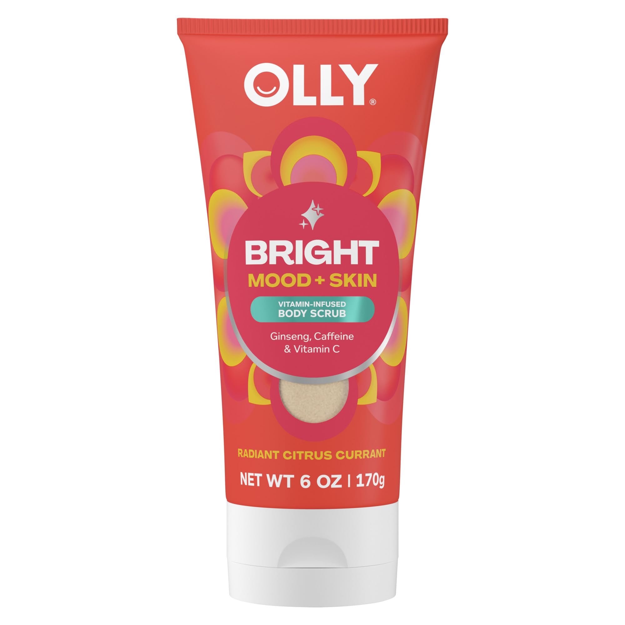 Meet OLLY BRIGHT MOOD SKIN Body Scrub—a creamy, serum-infused scrub designed to boost your mood and get your skin glowing. Powered by clinically studied ingredients, this dermatologist-approved formula helps repair your skin barrier with OLLY Vitamin complex, infused with a blend of ginseng, caffeine, and vitamin C. Developed by skincare experts, it gently and effectively exfoliates while deeply nourishing skin—so it buffs away dullness without ever leaving your skin feeling tight, dry, or uncomfortable. But we didn't stop at skin. We teamed up with top fragrance houses and neuroscientists to create a vibrant, science-backed scent that uplifts you every time you lather up. The result? A sensorial experience that transforms your daily shower into a self-care ritual. Every scrub is made by the same wellness experts behind your favorite OLLY supplements—so you know it's rooted in real science you can trust. Use BRIGHT MOOD SKIN Body Scrub solo for a soft, lingering citrus scent, or cleanses with our matching Body Wash to get ultra-soft skin and amplify the fragrance. For the full feel-good routine, pair it with our fan-favorite Hello Happy gummies before or after your shower to support good vibes from the inside out. Skin-repairing, mood-morphing, and totally OLLY—this is your glow, bottled.