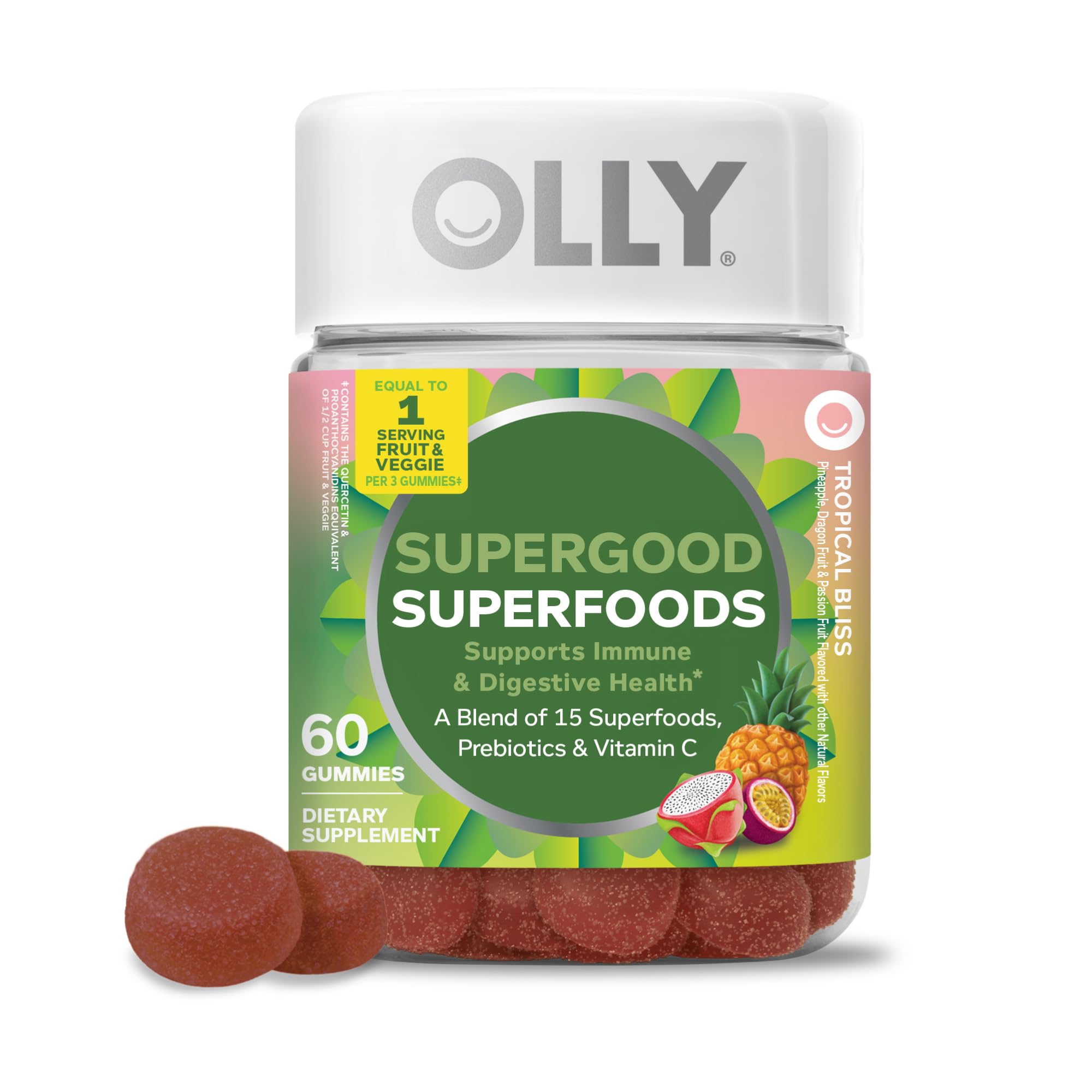 OLLY Supergood Superfoods Gummies Supports Immune & Digestive Health * 15 Superfoods Prebiotics Vitamin C Tropical Bliss Flavor 20 Day Supply - 60 Count
