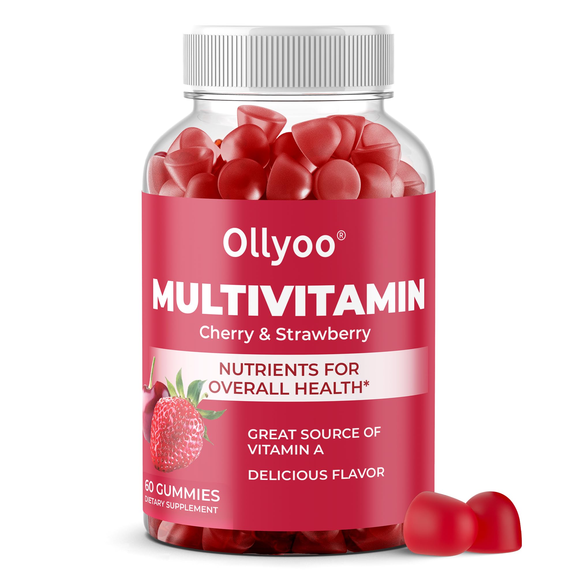 Ollyoo Adult Multivitamin Gummies | Men & Women | Cherry & Strawberry Flavor | Vitamin A C D E B6 B12 | Supports Overall Health | 60 Count