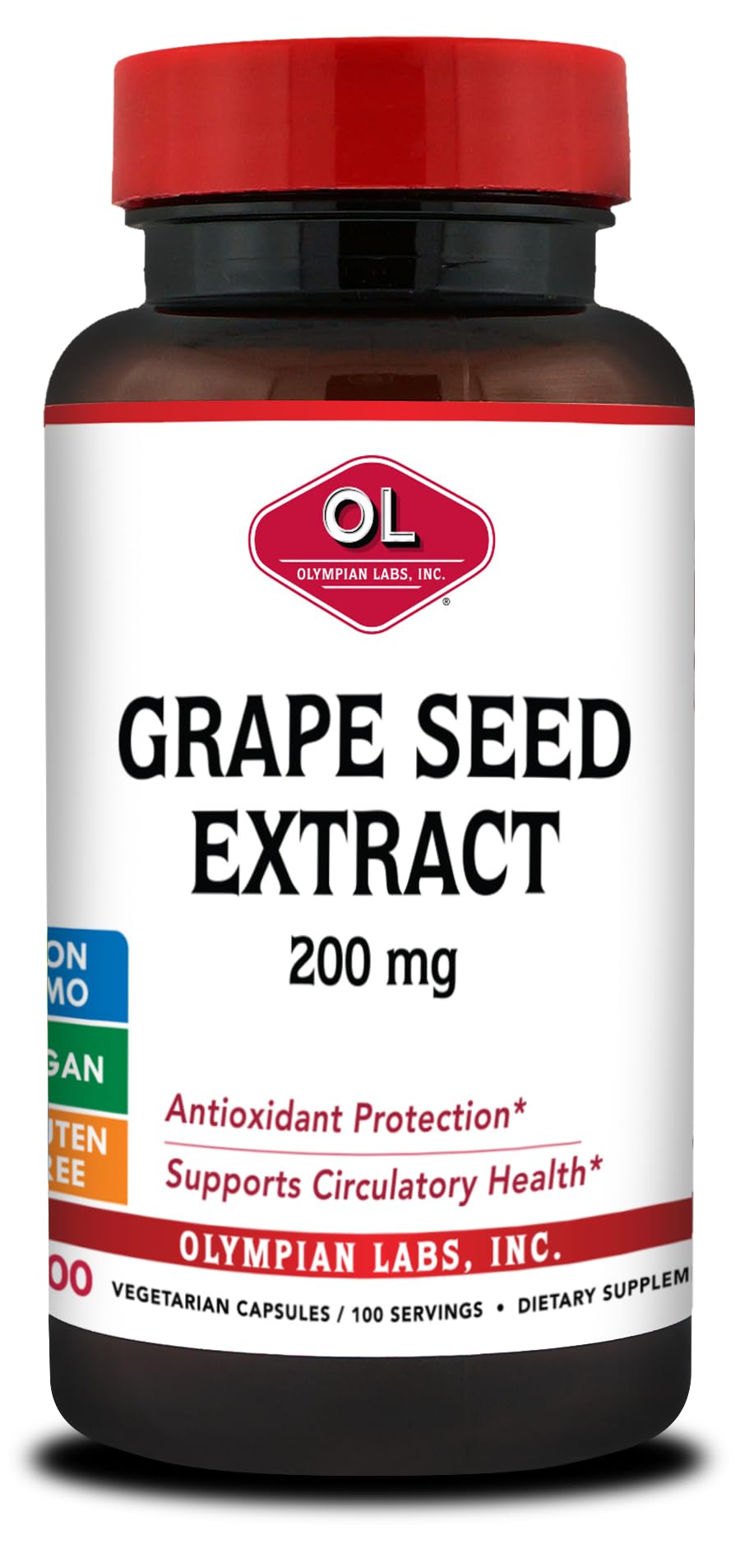 Olympian Labs Grape Seed 200 mg - 100 Vegetarian Capsules Grape Seed extract helps support circulatory health and is one of the most powerful antioxidants and free radical scavengers known. Grape Seed Extract is roughly 20 times more powerful than vitamin C and 50 times more powerful than vitamin E with respect to its antioxidant properties