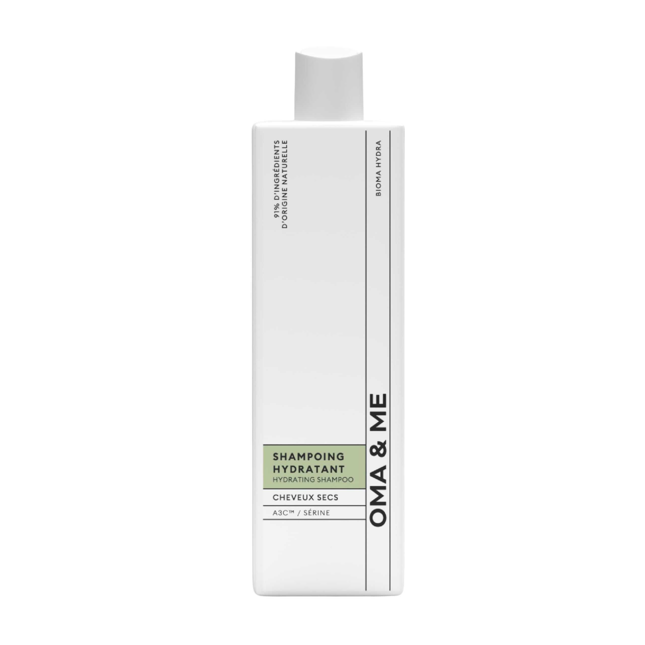 BIOMA THERAPY INNOVATION Exclusive method developed by OMA ME Laboratories based on the synergy between amino acids and probiotics to nourish and protect the scalp at the source. 91 NATURAL FORMULATION Designed with natural ingredients and without harmful or controversial chemicals (no silicones, parabens or sulfates, etc.). CLINICALLY PROVEN EFFECTIVENESS Ingredients selected for their effectiveness proven in clinical trials. TARGETS THE ROOT OF THE PROBLEM Our shampoo addresses the causes of dry and dehydrated hair, with action on the scalp and hair follicle. OPTIMAL HYDRATION Moisturizing shampoo that gently cleanses dry and dehydrated hair without weighing it down. Based on pre probiotics and amino acids, it promotes the balance of the scalp and hair microbiome.INNOVATION BIOMA THERAPY Méthode exclusive développée par les Laboratoires OMA ME qui se base sur la synergie entre acides aminés et probiotiques pour nourrir et protéger le cuir chevelu à la source. FORMULATION NATURELLE À 91 Conçu avec des ingrédients naturels et sans produits chimiques nocifs ou controversé (sans silicones, parabènes ou sulfates, etc.). EFFICACITÉ CLINIQUEMENT PROUVÉE Des ingrédients sélectionnés pour leur efficacité prouvée en essais cliniques. CIBLE LA RACINE DU PROBLÈME Notre shampoing s'attaque aux causes d'un cheveu sec et déshydraté, avec une action sur le cuir chevelu et le follicule pileux. HYDRATATION OPTIMALE Shampoing hydratant qui nettoie en douceur les cheveux secs et déshydratés sans les alourdir. À base de pré pro-biotiques et d'acides aminés, il favorise l'équilibre du cuir chevelu et du microbiome capillaire.