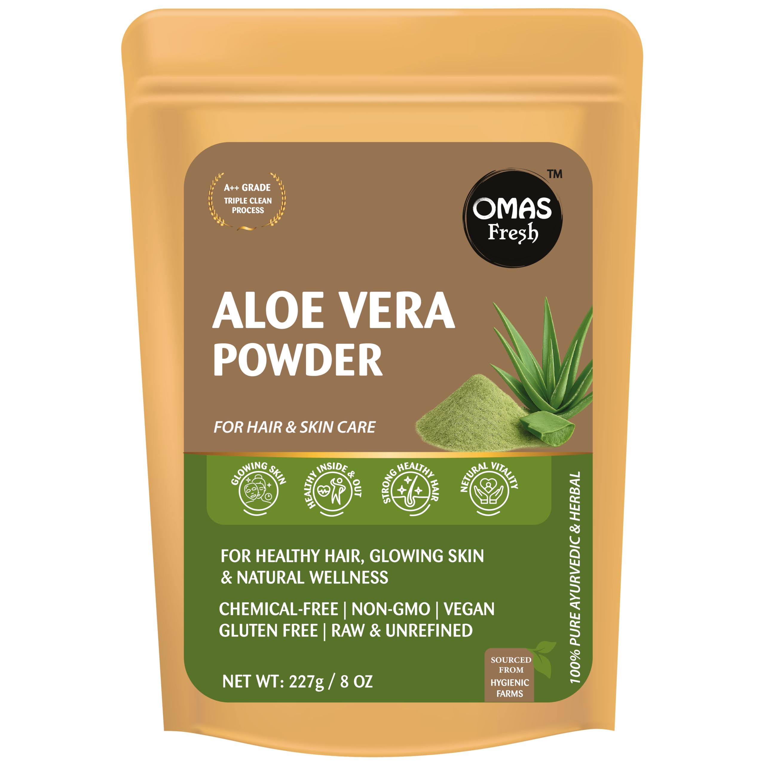 Omas Fresh 100% Pure Aloe Vera Powder 227g | Natural Multipurpose Herbal Powder | Ideal for DIY Face Hair & Body Care | Chemical-Free & Non-Toxic