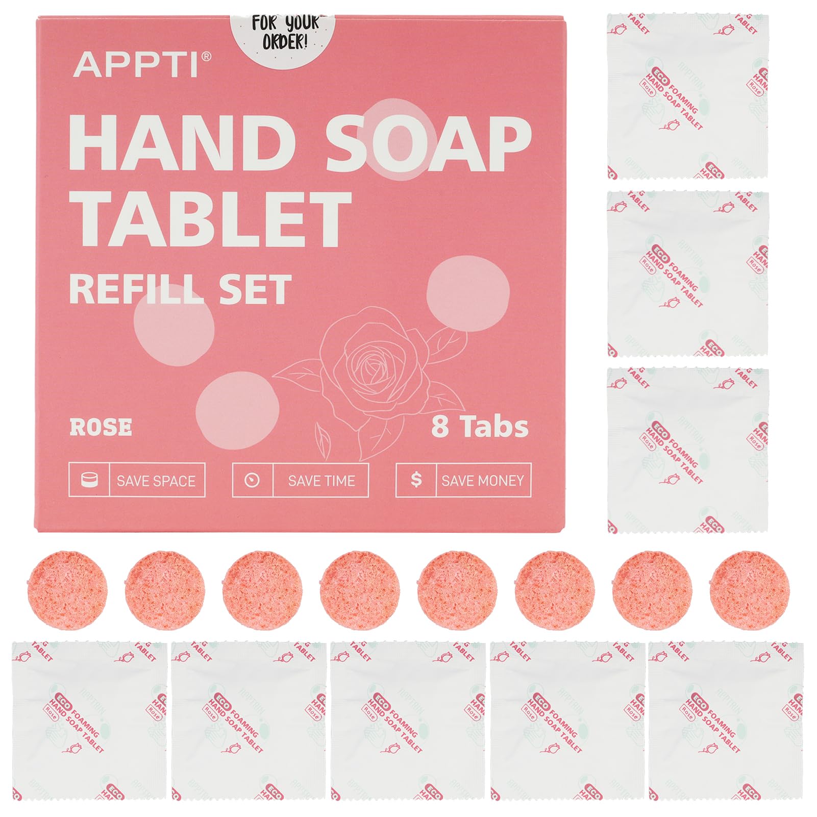 8PCS Rose Flavor Foaming Hand Soap Tablet Refills