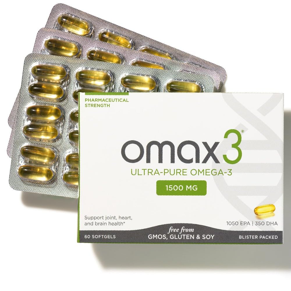 Omax3 Natural Omega 3 Fish Oil Pills 1500 MG EPA DHA - Omega3 Fatty Acid Supplements- Gluten Free Wild Caught Non GMO 30-Day Supply Blister Packed (1 Box) 60 Count (Pack of 1)