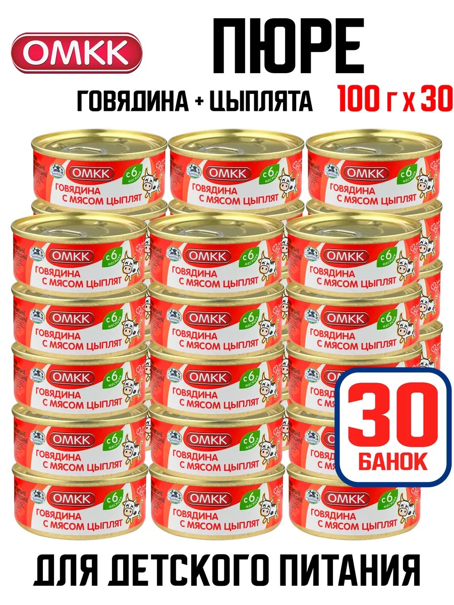 Детское пюре - Говядина с мясом цыплят, 100 г - 30 шт