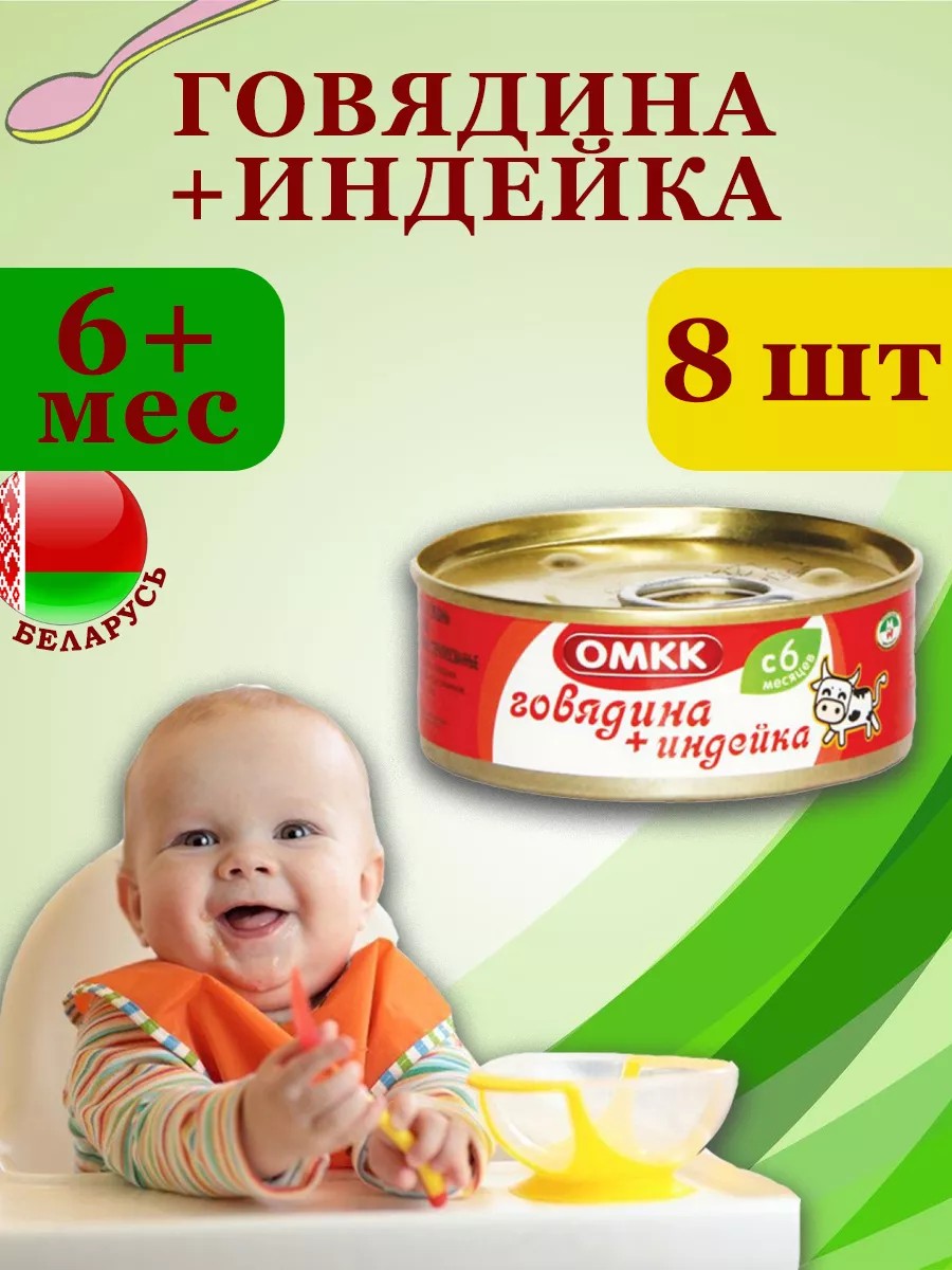Белорусские консервы ОМКК отличается строжайшим соблюдением всех норм производства, при котором используется только натуральное охлажденное мясо. Пюрешки в баночках замечательно усваиваются малышами и подходят для первого прикорма с 6 месяцев или с 8 мес согласно нормам. Банку удобно брать с собой на прогулку или в поездку. В нашем магазине представлено множество вкусов для разнообразного рациона ваших детей.
