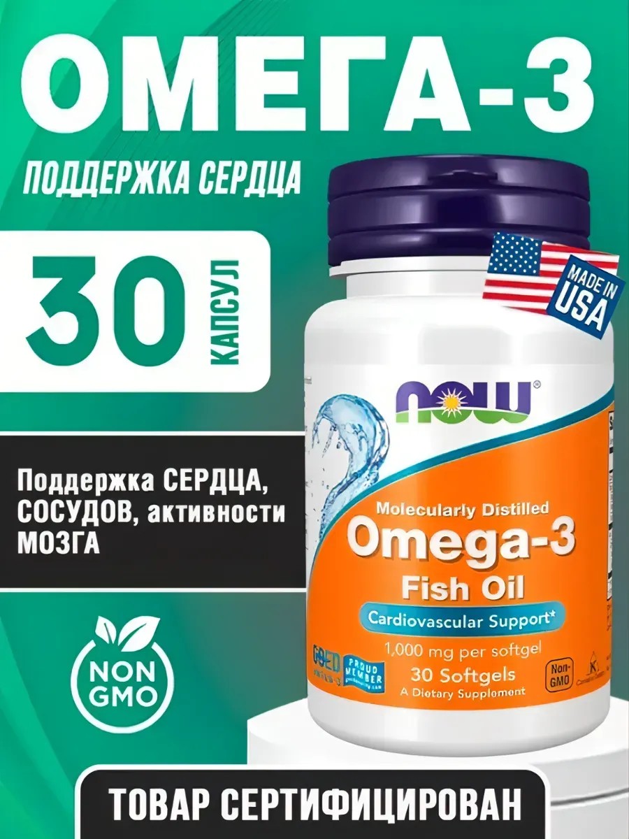 Омега 3 1000мг 100 капсул (омега3) – это натуральный и качественный БАД от американской компании Now Foods, разработанный для поддержания здоровья женщин и мужчин. Omega 3 является источником витаминов и питательных веществ, необходимых для нормального функционирования организма. Витамины и бады в капсулах содержат АЛК, ДГК и ЭПК - особенно важные незаменимые омега-3 жирные кислоты, которые необходимы для нормальной работы организма и которые содержатся только в рыбьем жире.