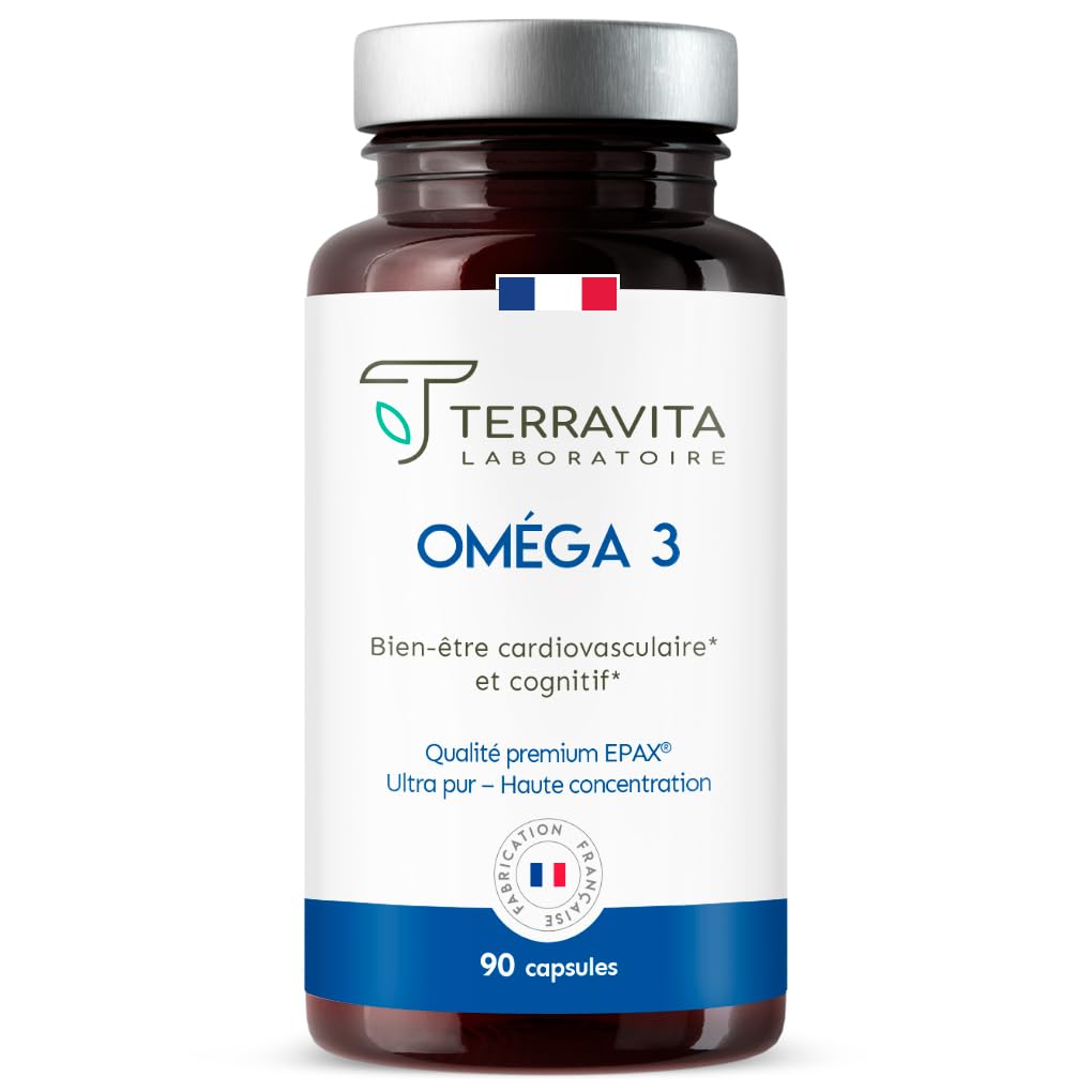 ✓ CUSTOMER SATISFACTION Our EPAX omega 3s come from sustainable fishing of small wild fish in controlled areas. The patented XO purification is then carried out in Norway and the encapsulation in France. Your satisfaction is our priority. Do not hesitate to contact us, our team of nutritionists and experts will be happy to offer you personalized assistance. AMBER BOTTLE To enjoy the benefits of omega 3s, simply take 3 softgels per day. Thanks to the patented XO stabilization process, our capsules have no fishy smell or taste and have excellent resistance to oxidation (totox index less than 3). Preservation is enhanced by our amber bottle, protecting the oil from sunlight. With 90 softgels, our bottle contains 1 month of treatment. SUSTAINABLE FISHING For optimal traceability and out of concern for eco-responsibility, wild fish (sardines, anchovies, mackerel) come from sustainable fishing areas (Friend of the Sea and Marin Trust certifications), in the Southeast Pacific. The oil is then purified in Norway and encapsulated in France. MAXIMUM PURITY The XO antioxidant process allows optimal preservation of the oil thanks to a rosemary extract and a mixture of natural tocopherols, while guaranteeing a non-irradiated oil, without heavy metals, GMOs, nanoparticles, or allergens. The color of the oil is the original one and is not adulterated by the addition of titanium dioxide or colorings. PREMIUM QUALITY Terravita has chosen patented EPAX omega-3s to offer you the best possible quality. EPAX is the world leader in concentrated omega-3 fatty acids. Our oil is the most concentrated in essential omega-3 fatty acids, 40 EPA and 30 DHA, allowing for optimal digestive tolerability.✓ SATISFACTION CLIENT Nos omega 3 EPAX sont issus d'une pêche durable de petits poissons sauvages en zones contrôlées. La purification brevetée XO est ensuite réalisée en Norvège et l'encapsulation en France. Votre satisfaction est notre priorité. N'hésitez-pas à nous contacter, notre équipe de nutritionnistes et d'experts se fera un plaisir de vous offrir une assistance personnalisée. FLACON AMBRÉ Pour profiter des bienfaits des oméga 3, il vous suffit de prendre 3 softgels par jour. Grâce au procédé de stabilisation breveté XO, nos capsules n'ont pas d'odeur ni de goût de poisson et ont une excellente résistance à l'oxydation (indice totox inf. à 3 ). La conservation est renforcée par notre flacon ambré, préservant l'huile de la lumière du soleil. Avec 90 softgels, notre flacon contient 1 mois de cure. PÊCHE DURABLE Pour une traçabilité optimale et par souci d'éco-responsabilité, les poissons sauvages (sardines, anchois, maquereaux) sont issus de zones de pêche raisonnée (certifications Friend of the Sea et Marin Trust), au Sud-Est du Pacifique. L'huile est ensuite purifiée en Norvège puis encapsulée en France. PURETÉ MAXIMALE Le procédé antioxydant XO permet une préservation optimale de l'huile grâce à un extrait de romarin et un mélange de tocophérols naturels, tout en garantissant une huile non irradiée, sans métaux lourds, sans OGM, sans nanoparticules, sans allergènes. La couleur de l'huile est celle d'origine et n'est pas falsifiée par l'ajout de dioxyde de titane ou de colorants. QUALITÉ PREMIUM Terravita a choisi des omégas 3 brevetés EPAX afin de vous offrir la meilleure qualité possible. EPAX est le leader mondial des acides gras oméga-3 concentrés. Notre huile est la plus concentrée en acides gras essentiels oméga-3, 40 d'EPA et 30 de DHA, permettant une tolérabilité digestive optimale.