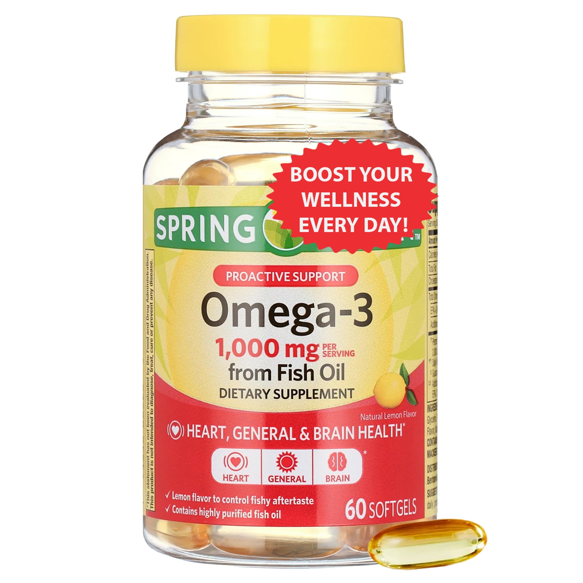 Omega-3 Fish Oil 1000mg Softgels 60 Count Brain Immune & General Wellness Support EPA & DHA Lemon Flavor Proactive Support Supplement