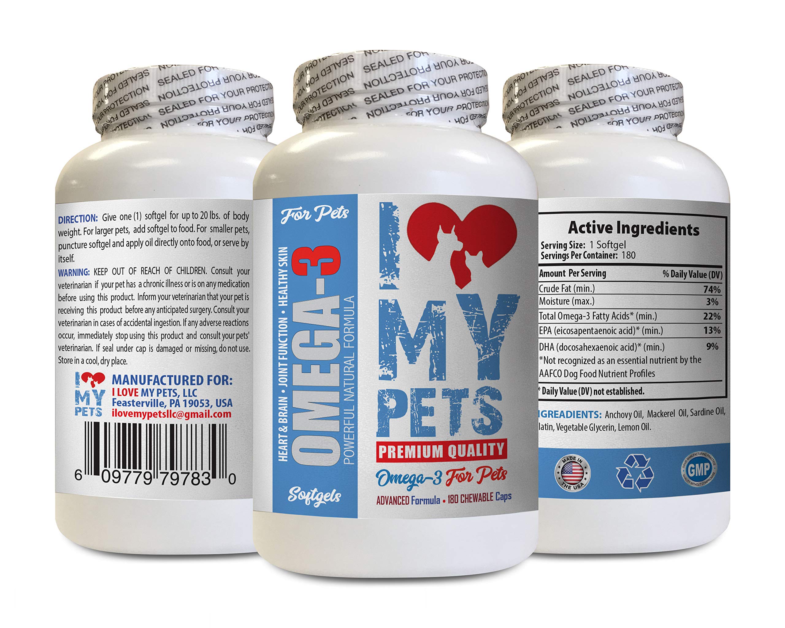 omega 3 for cats chewable - OMEGA 3 FATTY ACIDS FOR PETS - DOGS AND CATS - PREMIUM HEALTH - anti inflammatory for cats - 180 Softgels (1 Bottle) HEART HEALTH FOR PETS: Pets that supplement with omega-3 may reduce their chances of developing irregular heart rhythm, as well as reduce their potential to develop heart problems. Regular supplementation may also help your dog or cat decrease there blood cholesterol and triglyceride levels, maintain a healthy blood pressure. OMEGA FATTY ACIDS FOR PETS: The Omega fatty acids are a potent powerhouse of phenomenal health benefits that can dramatically improve the general health. Originally recognized as an essential supplement for people, omega fatty acids are now being utilized to alleviate various ailments and improve general health in our pets as well! JOINT HEALTH FOR PETS: Due to Omegas anti-inflammatory abilities studies shown to help with joint inflammation for pets. Based on observation, dogs and cats with joint inflammation appear to be more agile and move around more freely than pets that do not receive an omega-3 supplement. So in result your pet can feels a lot better when taking our supplement. BOOST PETS RAIN FUNCTION: Omega-3 supplementation can also support your pet's neurological health and cognitive function. Especially in pets who may suffer from age-related changes with behavior and mobility. There are studies with evidence that suggests consuming omega-3 fatty acids can positively impact cognitive and behavioral memory and performance.