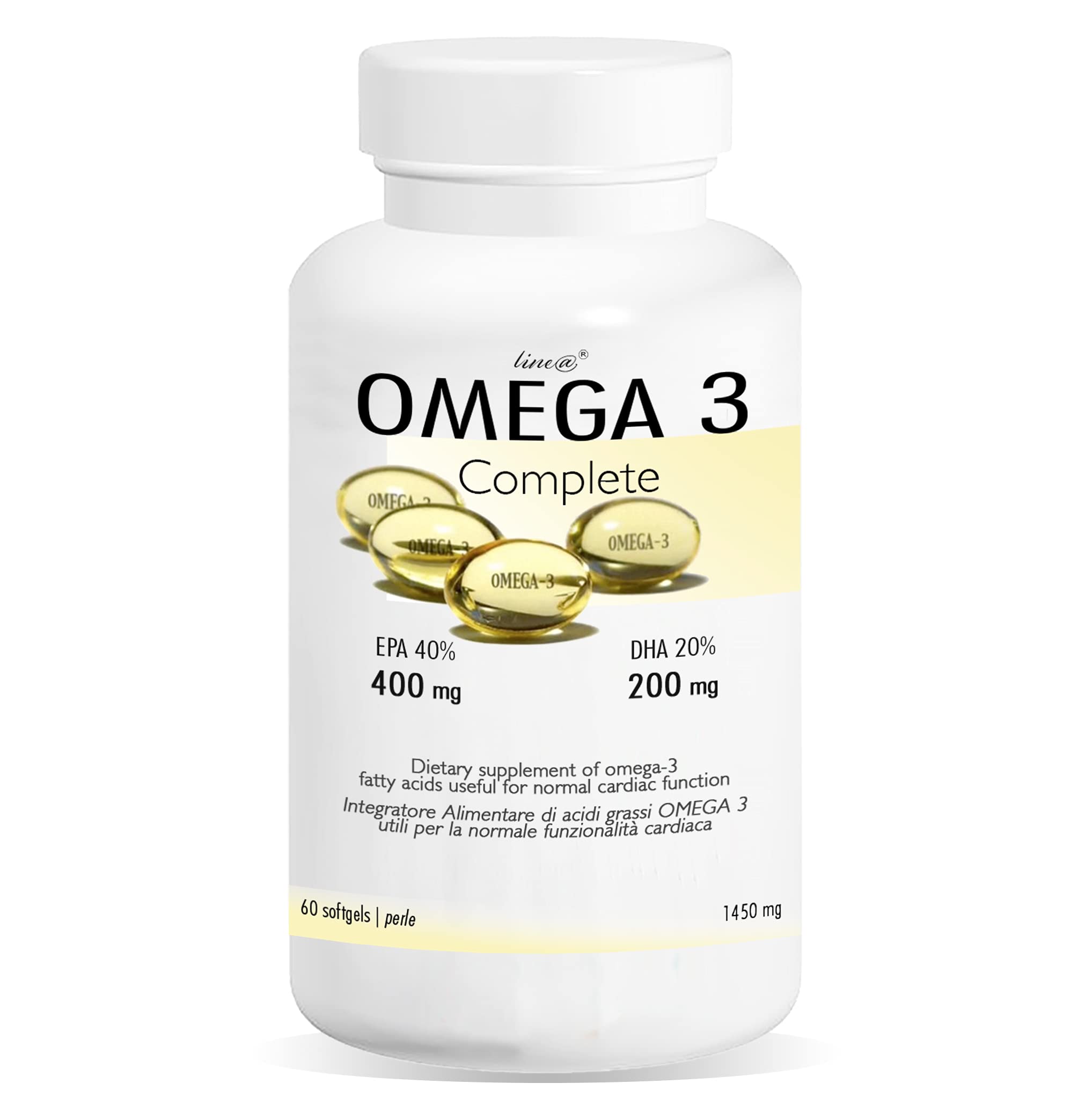 Omega 3 is a dietary supplement containing EPA and DHA, fatty acids that are useful in supporting the physiological function of the heart. INGREDIENTS fish oil (40 EPA and 20 DHA), capsule (gelatin) thickener: glycerol, water, antioxidant: tocopherol-rich extract. DIRECTIONS FOR USE take 2 capsules with water once a day. Store in a cool, dry place. Avoid exposure to heat sources and sunlight. SAFETY WARNING Do not exceed the recommended daily intake. Food supplements should not be used as a substitute for a varied diet. A varied and balanced diet and a healthy lifestyle are important. Keep out of reach of young children. The main sources of Omega 3 come from the marine environment: certain types of fish, including salmon, tuna, cod (cod liver oil is rich in it), swordfish, herring. Ideal for a healthy and active lifestyle, our formula (in the form of EPA 800mg and DHA 400mg) helps maintain a healthy mind and takes care of eye and heart functions. Very high concentration: 2000mg per 2 pearls including 800mg of EPA and 400mg of DHA. Italian artisanal product of the highest quality notified to the Italian Ministry of Health. Food supplement based on EPA and DHA useful for cardiovascular function and for the control of lipid metabolism. Omega 3 Line based on fatty acids useful for supporting physiological cardiac function - FISH OIL (titrated at 20 EPA and 40 DHA compared to total fatty acids) substances known for their anti-inflammatory activity. Omega 3 est un complément alimentaire contenant de l'EPA et du DHA, des acides gras qui sont utiles pour soutenir la fonction physiologique du cœur. INGRÉDIENTS huile de poisson (40 EPA et 20 DHA), capsule (gélatine) épaississant: glycérol, eau, antioxydant: extrait riche en tocophérols. MODE D'EMPLOI prendre 2 capsules avec de l'eau une fois par jour. Conserver dans un endroit frais et sec. Évitez l'exposition aux sources de chaleur et à la lumière du soleil. AVERTISSEMENT DE SÛRETÉ Ne pas dépasser la dose journalière recommandée. Les compléments alimentaires ne doivent pas se substituer à une alimentation variée. Une alimentation variée et équilibrée et un mode de vie sain sont importants. Tenir hors de la portée des jeunes enfants. Les principales sources d'oméga 3 proviennent du milieu marin : certains types de poissons, notamment le saumon, le thon, la morue (l'huile de foie de morue en est riche), l'espadon, le hareng. Idéale pour un mode de vie sain et actif, notre formule (sous forme d'EPA 800mg et de DHA 400mg) aide à maintenir un esprit sain et prend soin des fonctions oculaires et cardiaques. Très forte concentration : 2000mg par 2 perles dont 800mg d'EPA et 400mg de DHA. Produit artisanal italien de la plus haute qualité notifié au ministère italien de la santé. Complément alimentaire à base d'EPA et de DHA utile pour la fonction cardiovasculaire et pour le contrôle du métabolisme des lipides. Oméga 3 Line à base d'acides gras utiles pour soutenir la fonction physiologique cardiaque - HUILE DE POISSON (titrée à 20 en EPA et 40 en DHA par rapport aux acides gras totaux) substances connues pour leur activité anti-inflammatoire.
