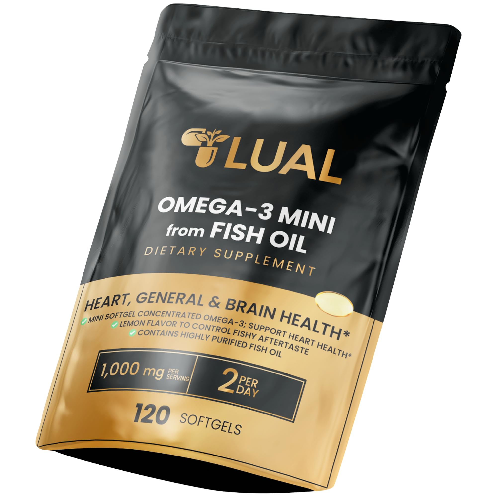 Daily Wellness Support: Helps maintain heart, brain, and general health with pure fish oil. Clean Label Formula: Non-GMO, gluten-free, no artificial colors or flavors. Lemon Flavored Burpless: Natural lemon oil helps reduce fishy aftertaste for a pleasant experience. Pure Fish Oil, 1000mg per Serving: High-quality source of essential Omega-3s including EPA and DHA. Mini Size, Easy to Swallow: Designed for comfort with smaller softgels, perfect for daily use.