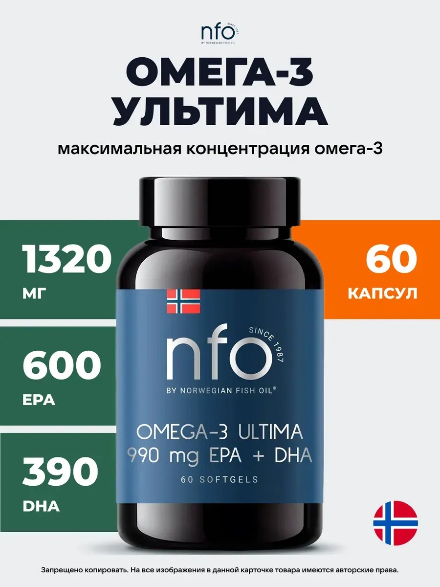 NFO Omega-3 Ultima (НФО Омега-3 Ультима) – натуральный высокоочищенный рыбий жир в легкодоступной форме в мягких желатиновых капсулах без запаха и вкуса с высокой концентрацией ЭПК и ДГК в одной капсуле.